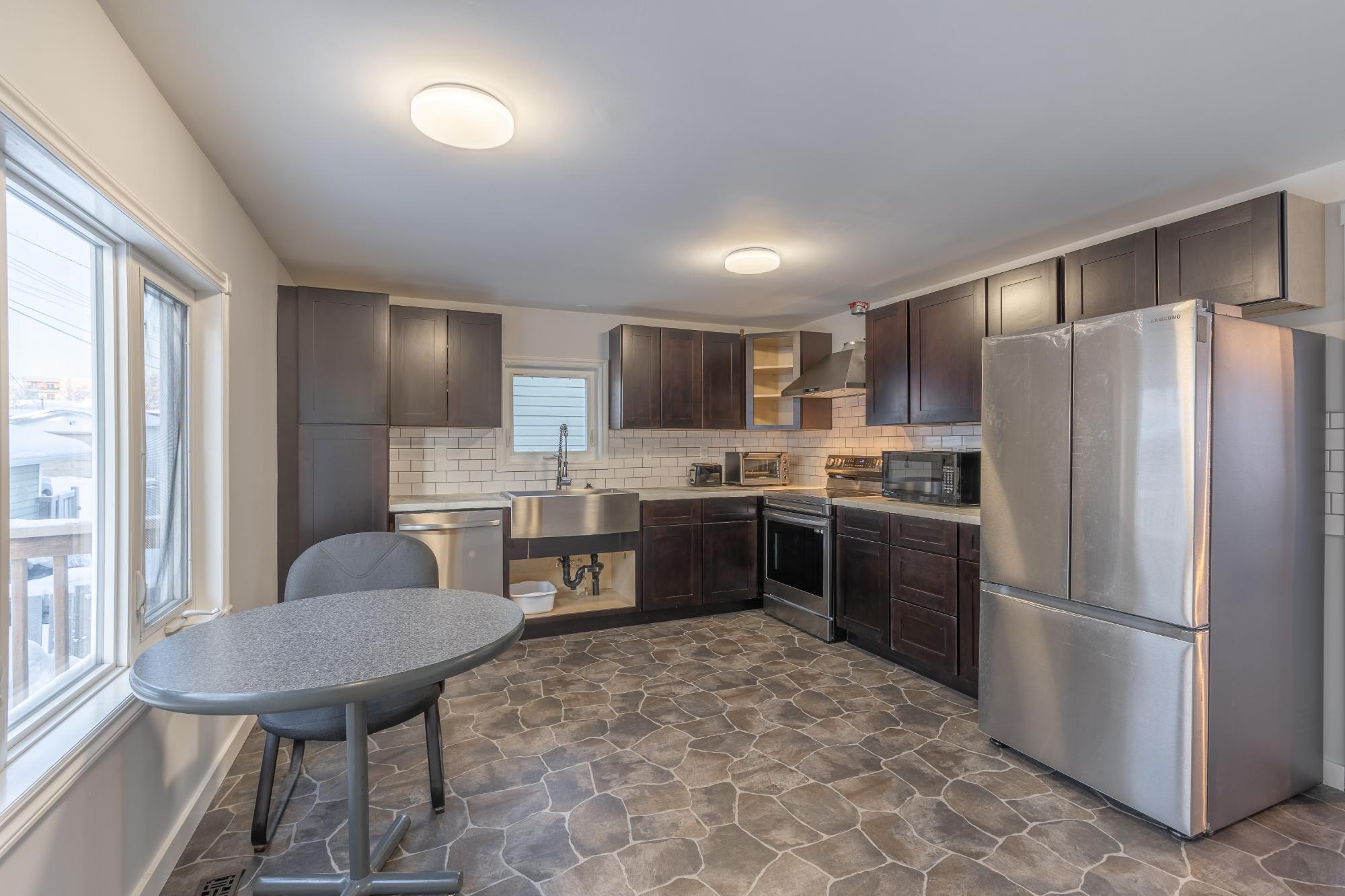 Three bedroom, one bath home in a great family neighbourhood. Some recent updates include: new flooring and paint. A full kitchen renovation was completed and includes cabinets, countertop, large farmhouse sink, flooring, new ceiling, with new stainless steel appliances (fridge, stove and dishwasher (dishwasher not installed). Bathroom updates include vanity, toilet and flooring. Pressure treated front entry deck and rear deck installed. Pellet stove is not in operational condition. Large 18' x 12' insulated workshop. Price includes fridge, stove, dishwasher, washer, dryer and workshop.