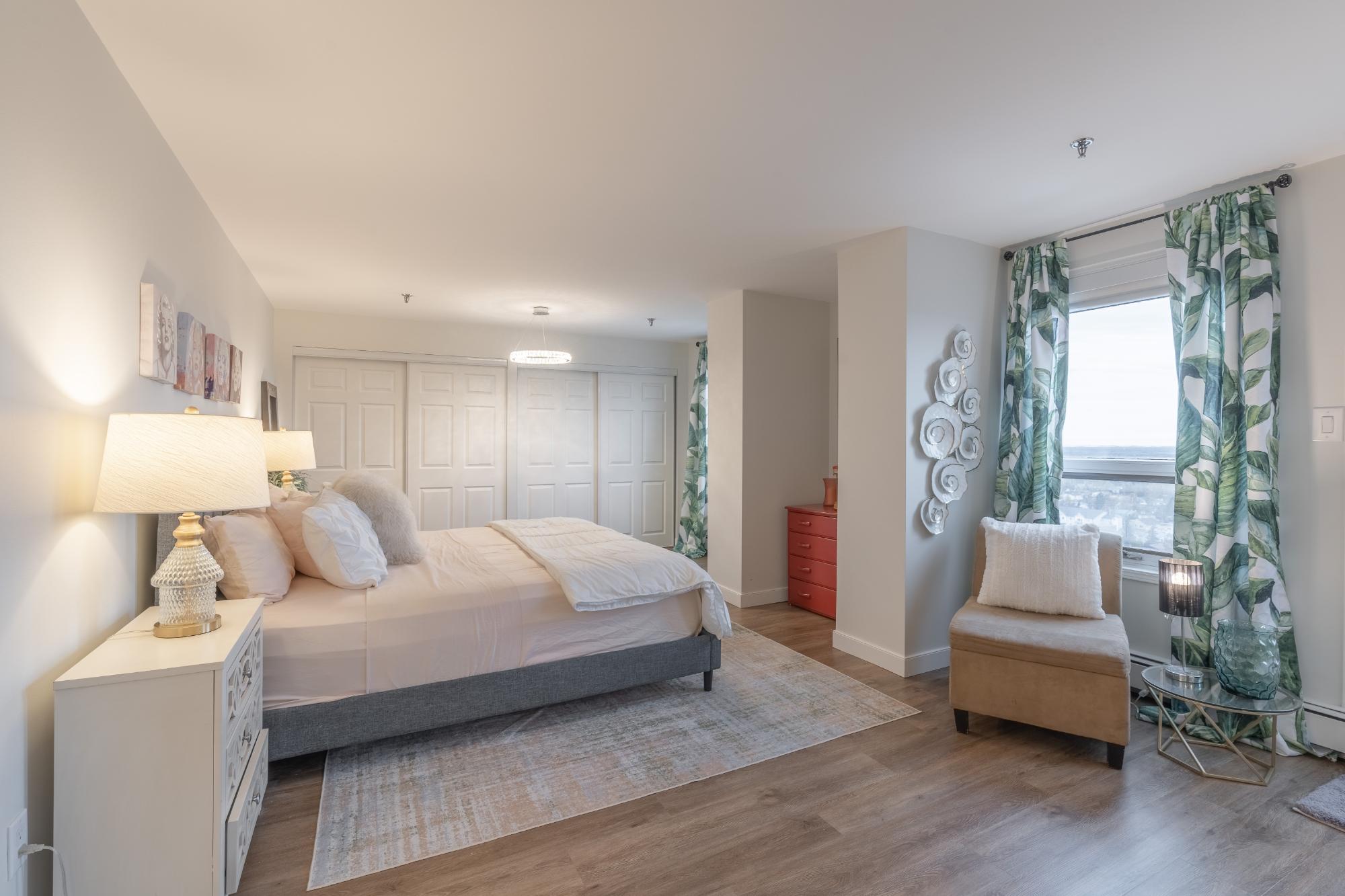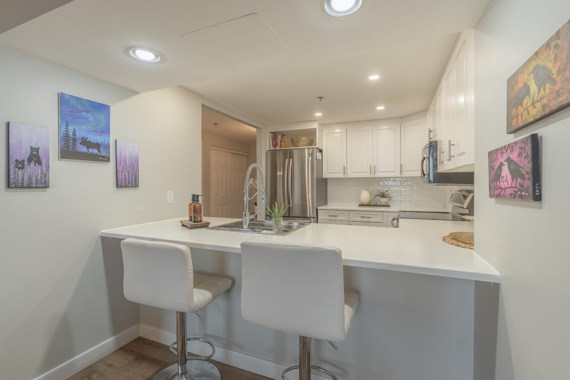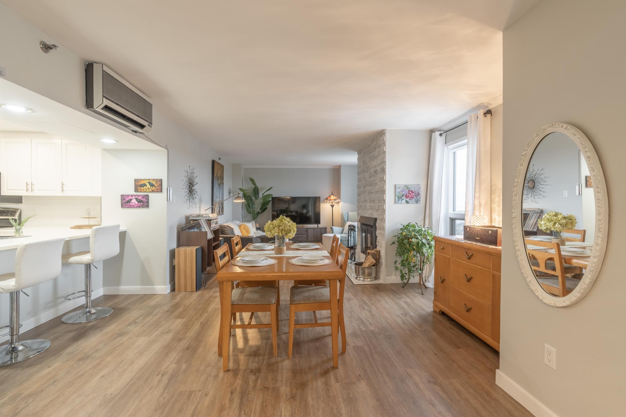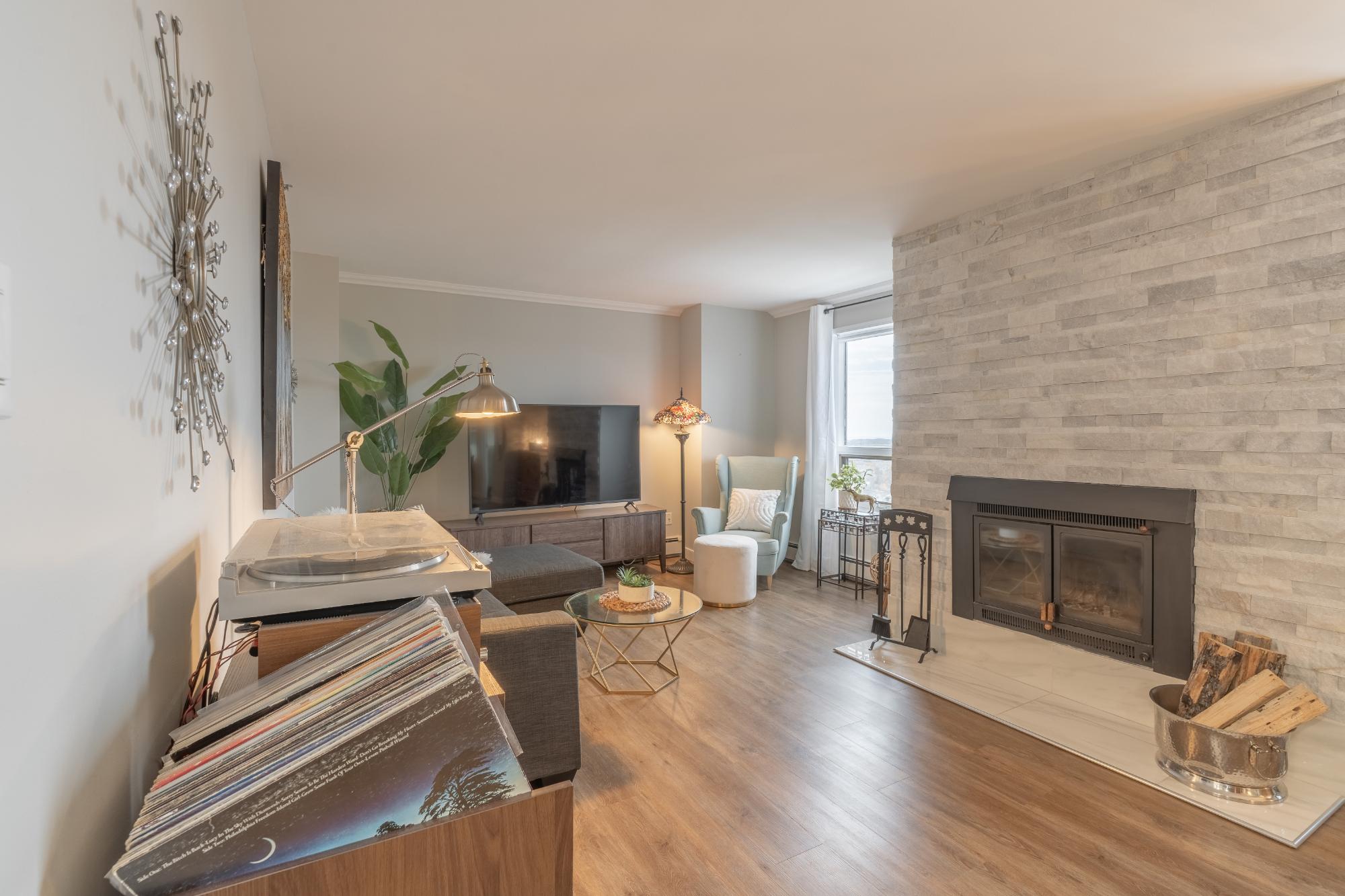 Perched on the 17th floor of Northern Heights in Yellowknife, this executive two-storey penthouse spans over 1,800 sq. ft. with stunning views of the city and Great Slave Lake. It features 2 bedrooms, 3 updated baths, and a bright open living area with a wood-burning fireplace and custom stone wall. The kitchen boasts stainless steel appliances and a custom tile backsplash, while a sunroom with floor-to-ceiling windows fills the space with natural light. Upstairs, the primary suite includes a wall of closets and a renovated ensuite with a soaker tub and walk-in shower. The second bedroom has an updated bath with a jetted tub. Amenities include secure entry, indoor mall access, fitness facilities, racquet courts, party room, and heated underground parking (extra). Condo fees cover heat, water, management, and more. Urban luxury and convenience in the heart of Yellowknife.