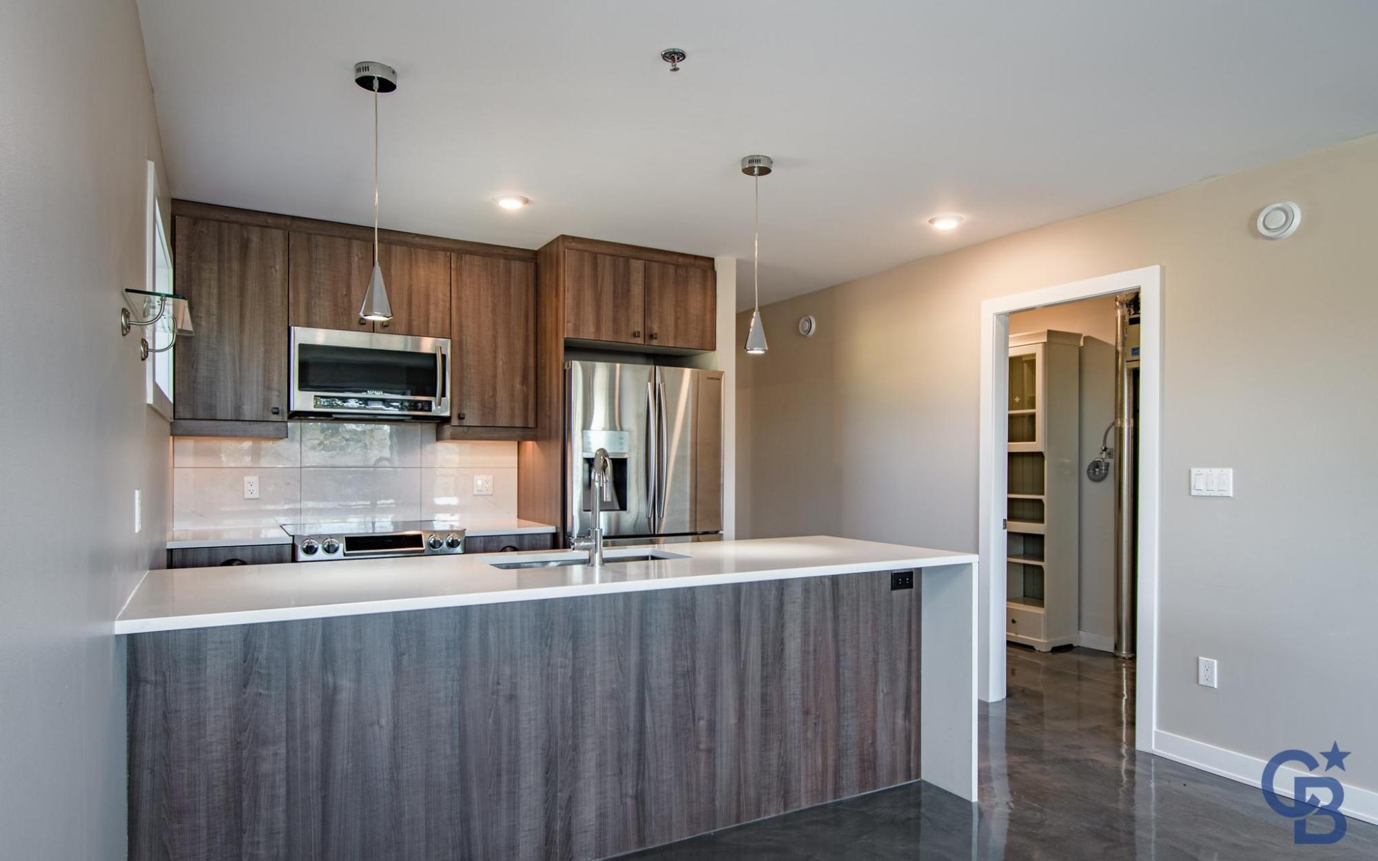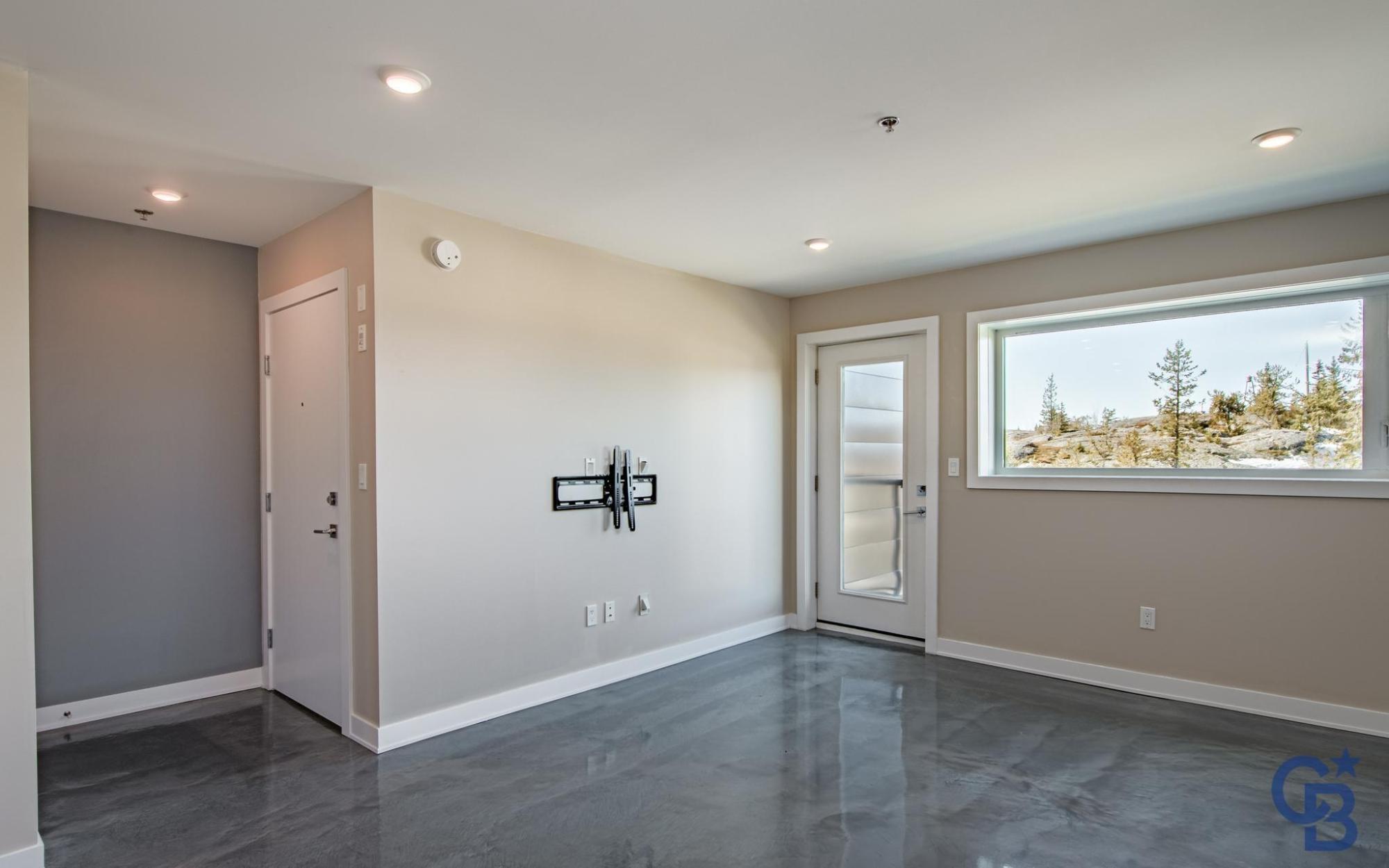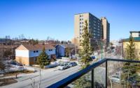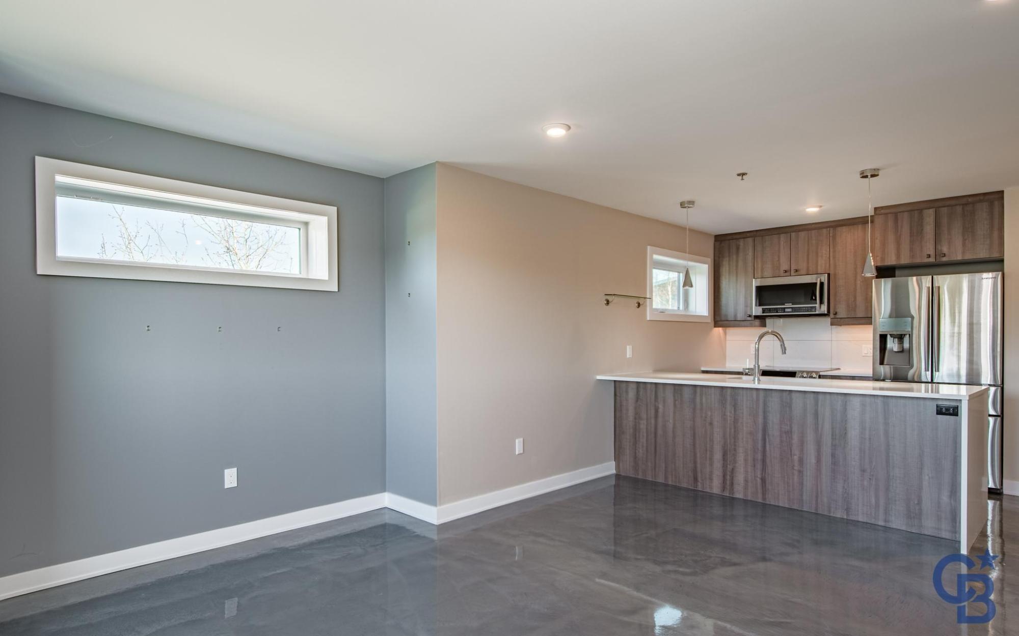 Located in a quiet downtown neighbourhood close to schools, parks and a short walk to restaurants and shopping. This exceptional & modern 2 bedroom, 2 bathroom condo is 1010 sq. ft. with quick possession available. This home features an open concept design allowing for maximum light to flow through to a sunny, south facing deck with glass railings. Sleek Kitchen Kraft cabinets with soft close drawers, white quartz countertops and top-tier stainless steel appliances. The unique polished concrete flooring highlights the space with cozy in-floor heat for maximum comfort. Built to the highest energy efficient standards with recessed LED lighting, triple pane Zone D windows, low-flow shower heads, dual-flush toilets, R34 walls and R53 roof. Noise transmission is reduced with a 2" concrete topper on floor, solid core interior doors and Roxul mineral wool insulation. Warm storage is included in the basement. Condo fees cover: Heat, water, snow removal at parking area, insurance & more.