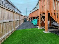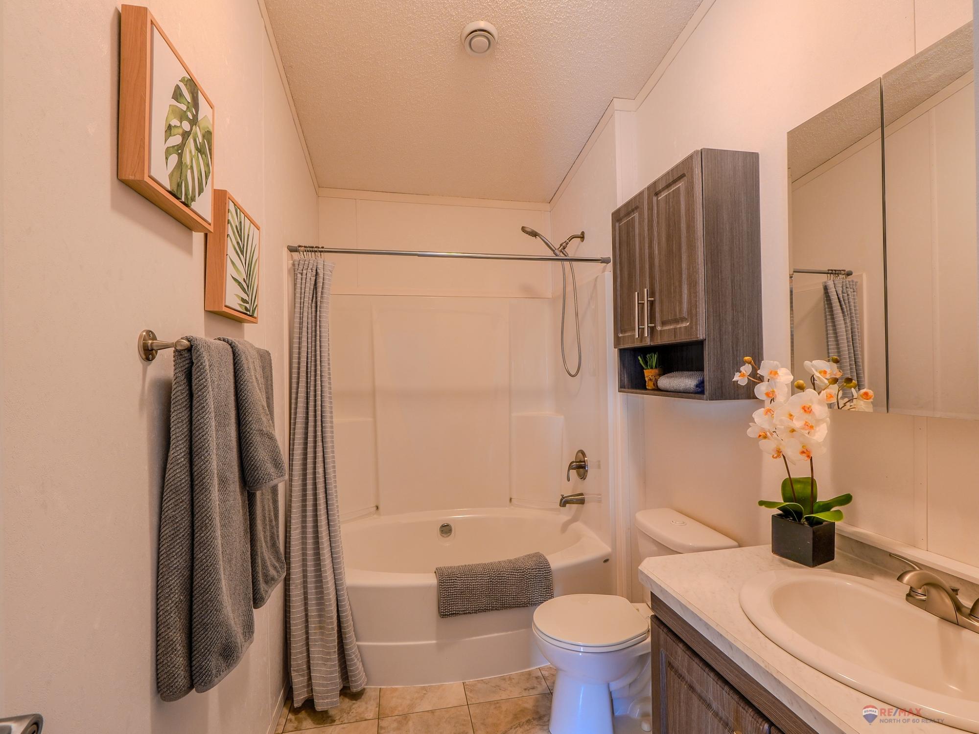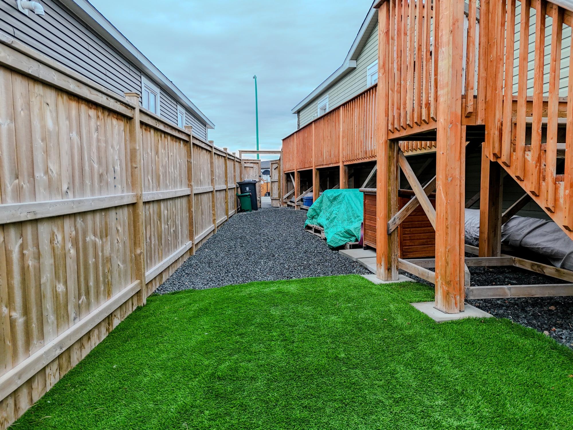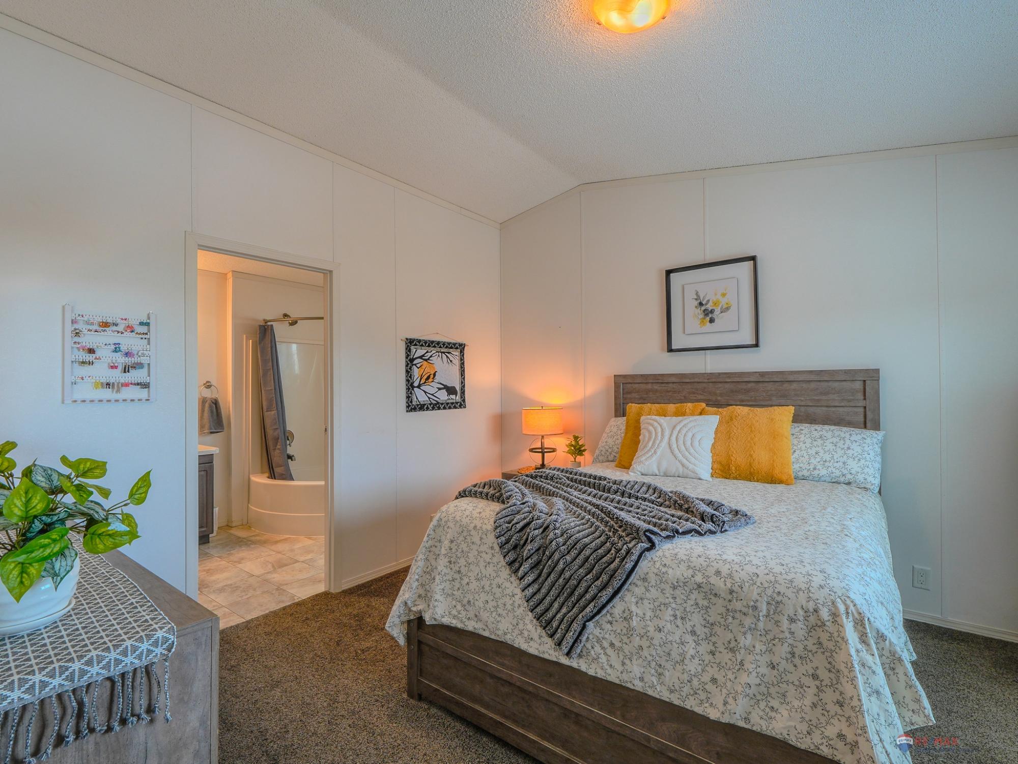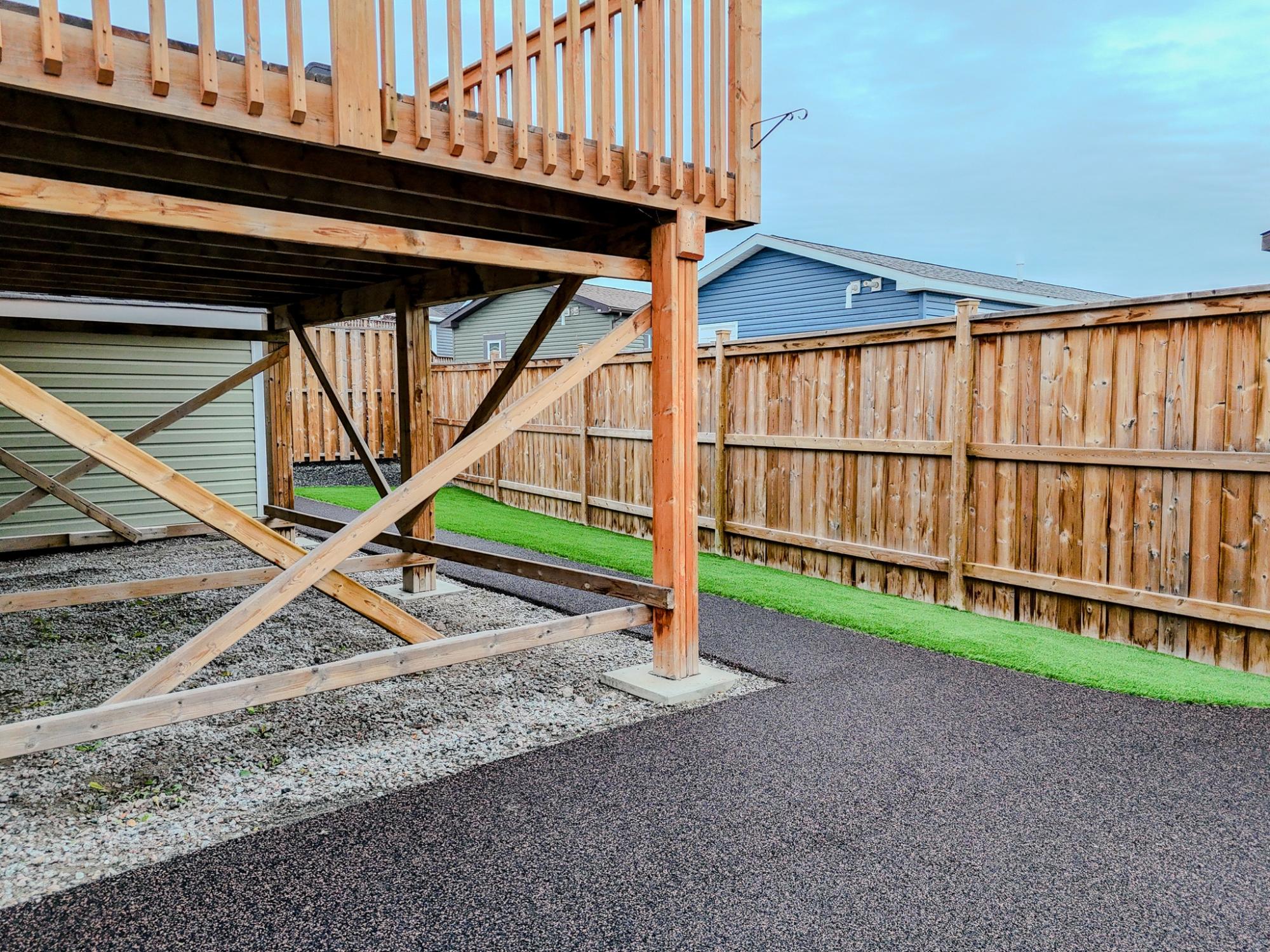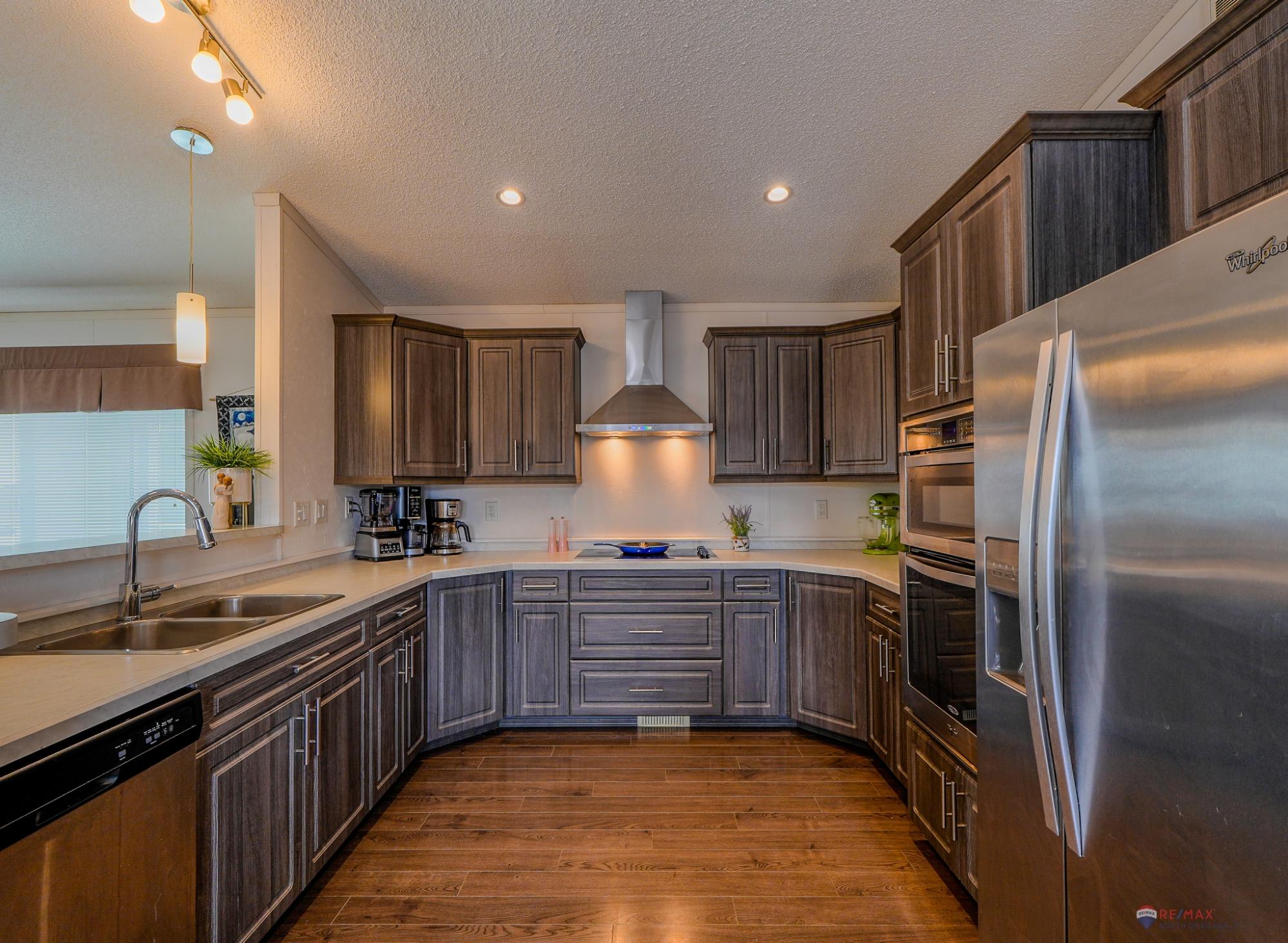 Well-laid-out 3-bedroom, 2-bath home with high-grade laminate throughout the main living areas and cathedral ceilings. The home offers three spacious bedrooms, including a primary retreat with walk-in closet and full ensuite featuring a jetted corner soaker tub/shower and separate linen storage. Bright throughout with large triple-pane windows, plus pot lighting in the kitchen and dining area with garden door for easy BBQ access. The U-shaped kitchen features PVC pewter pine cabinetry in a light grey finish, upgraded hardware, soft-close drawers, raised eating bar and pendant lighting. Fully fenced yard professionally landscaped by Arctic Turf with weed barrier, crush stone, artificial turf, recycled rubber path and sitting area, plus a custom wired shed. Parking for 4 vehicles. Heat 2,286 L propane @.89 $2,035