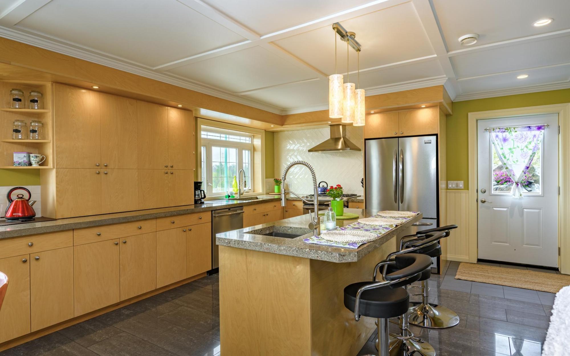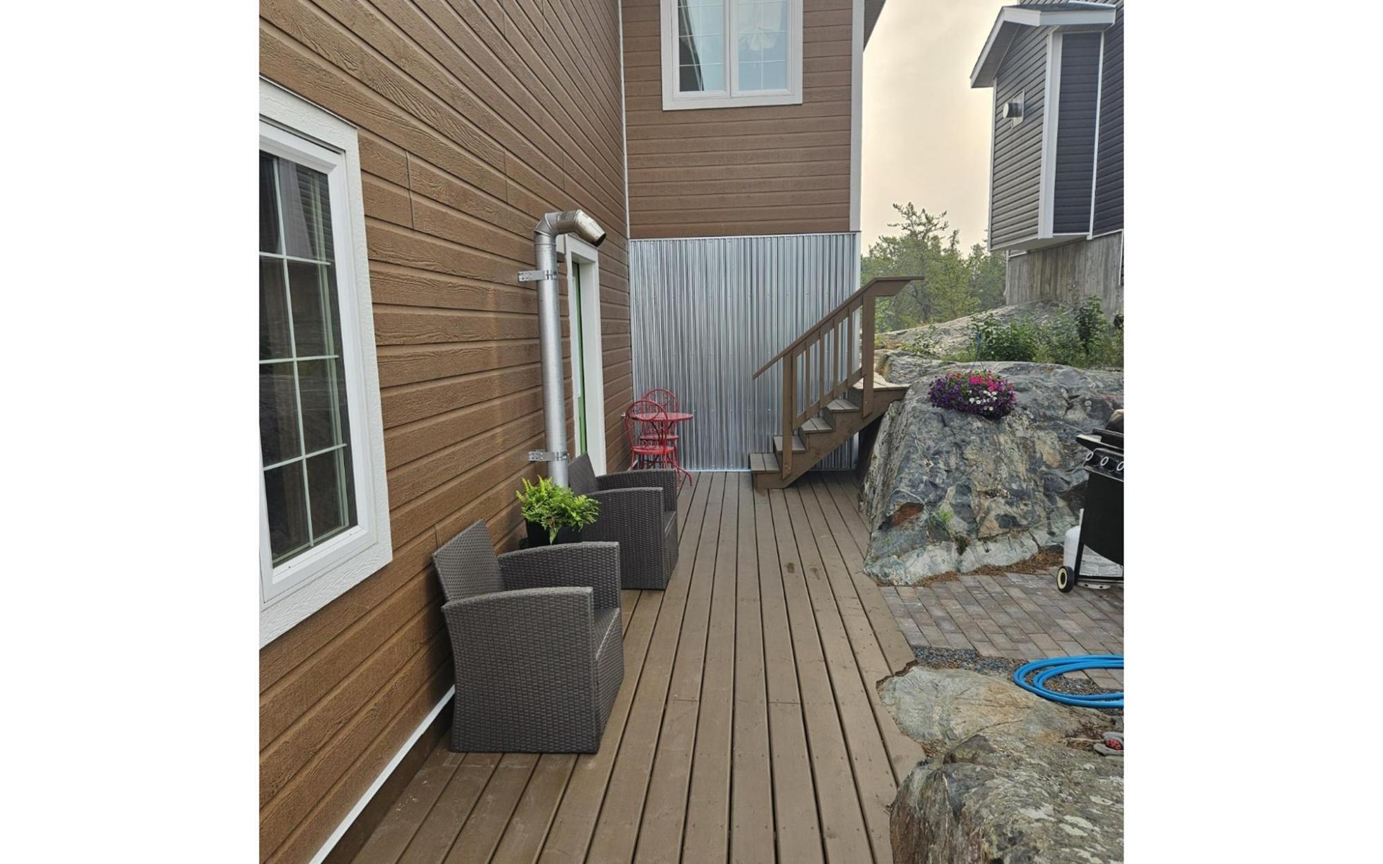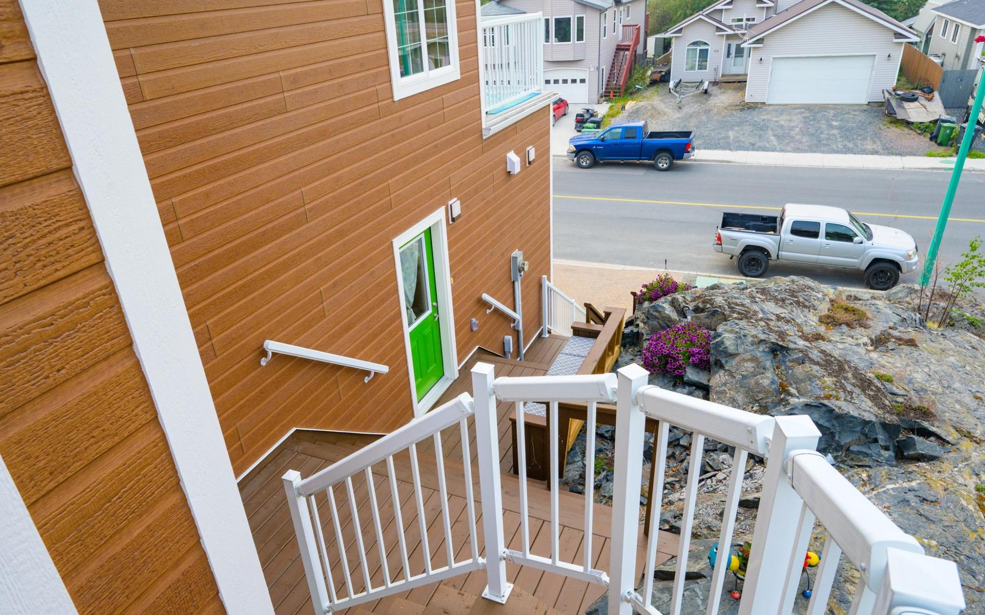 With features galore inside and out this custom designed one owner home offers over 2600 sq ft of living space on 3 levels with 4 BR/4 baths plus sleeping platform for an older child or guests. Huge double garage that will fit any vehicle with room for that 2nd vehicle and a workshop area as well. Long life hardboard siding with metal accenting. Decks on both sides, rear private deck, front and back decks catch all day sun with an upper level coffee deck off the primary bedroom that receives morning sun. All decks are pressure treated and have been replaced in the past few years and have been freshly stained. Interlocking brick driveway. 22x30 garage with 10' ceilings, painted slab, in-floor heat and a storage cubby under the stairwell. Stairs up the main level living, kitchen and dining area with entry door to the house from the exterior stairs with a built-in siting bench and an entry door to the side deck. All exterior doors have been recently replaced.