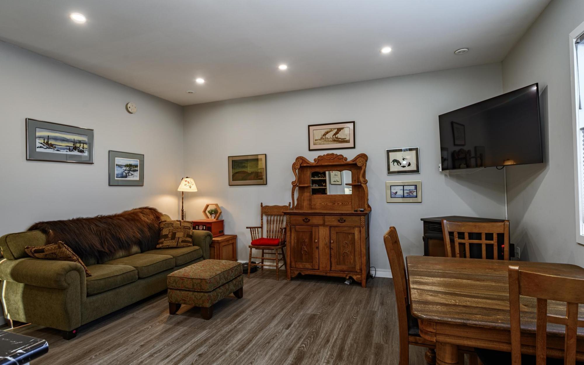 Beautiful & fully developed property located on Matonabee Street, the longstanding heart & soul of Downtown Yellowknife. This 1950s neighbourhood has always been a desirable location, with charming properties set back on large 9000 sq ft lots. Majestic trees line the curb, and there is easy access to downtown, Frame Lake trails, and the Avens campus. Every property is unique, but this one is a stunner. The attractive heritage-style home originally built for government officials is a 2-storey residence on full basement, with a modern add-on family room and entry. It gives this 3-bed, 2-bath home the perfect design and size for almost any family. The second residence on this property is a 2-bedroom Cape Cod cottage-style home, complete with a 2nd storey office or family room, all on a concrete slab foundation. It features a full kitchen and bath, plus its own private deck space, alley-access parking, and a single-car garage.