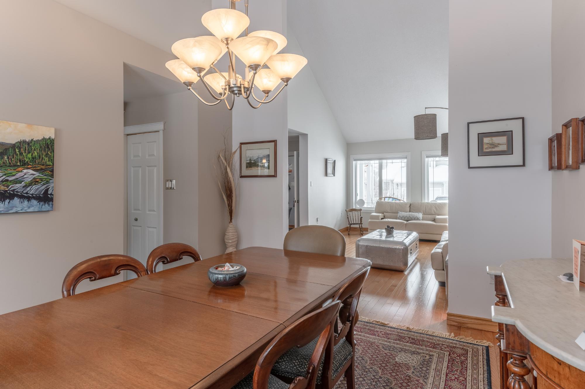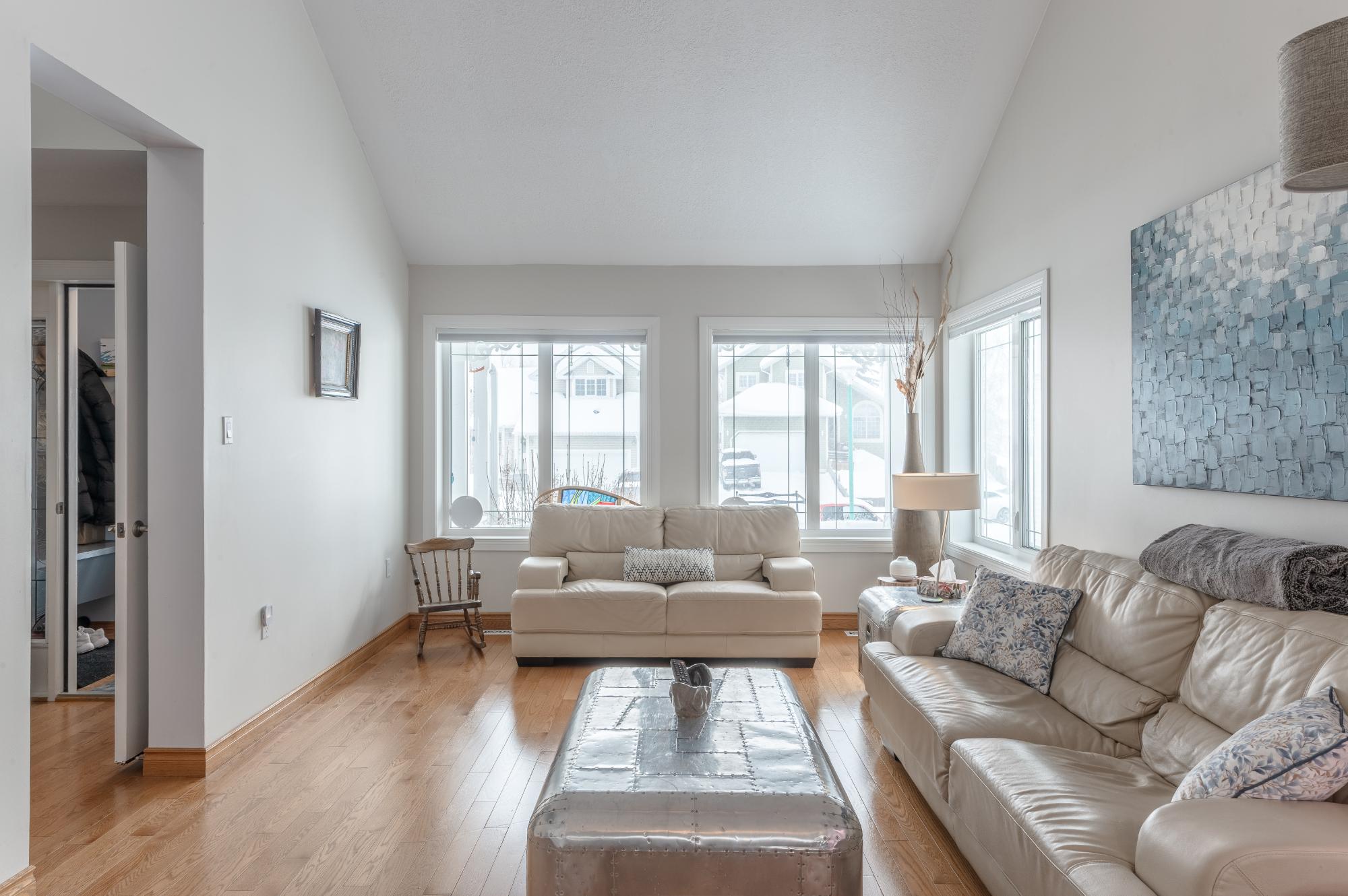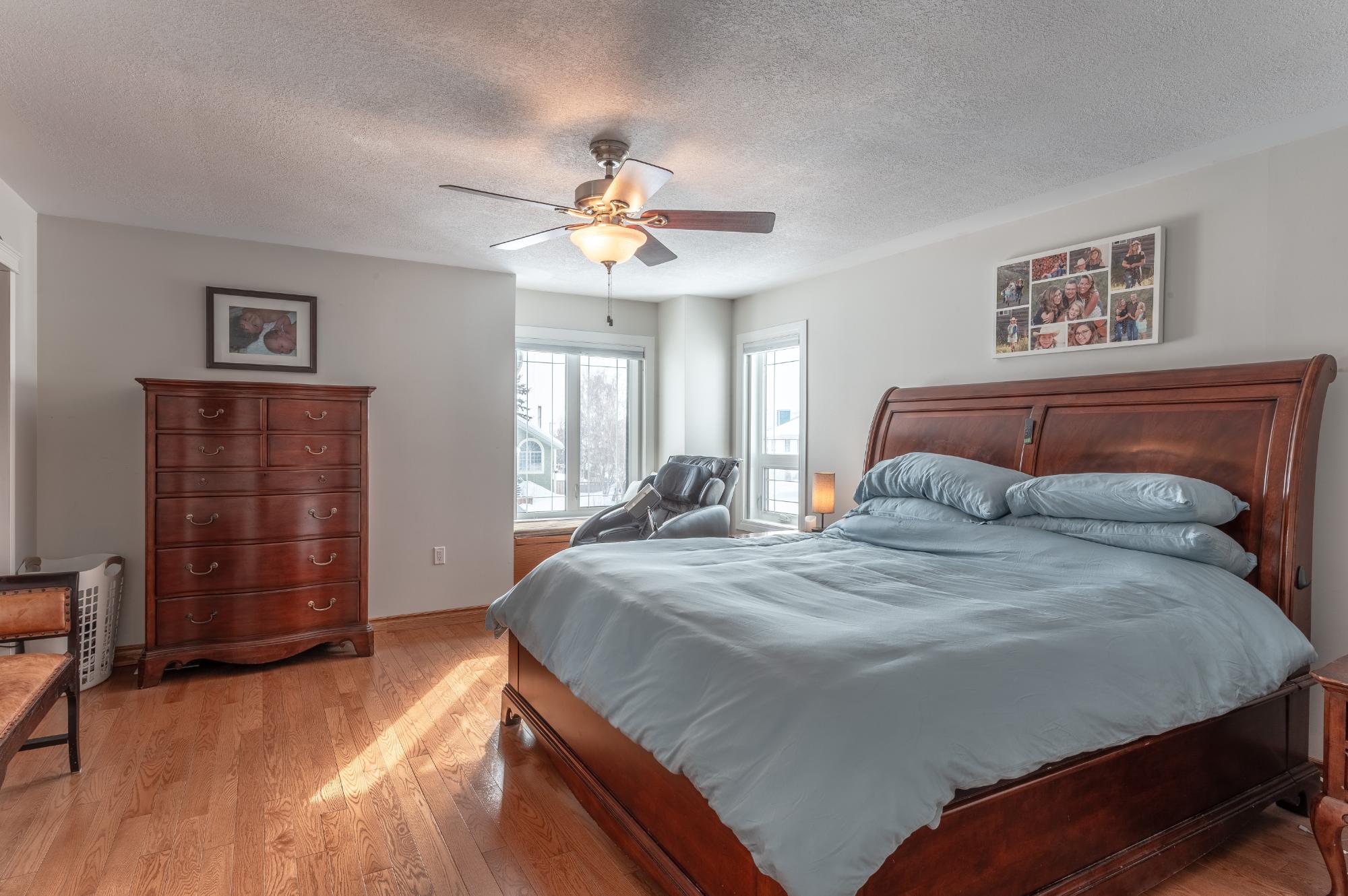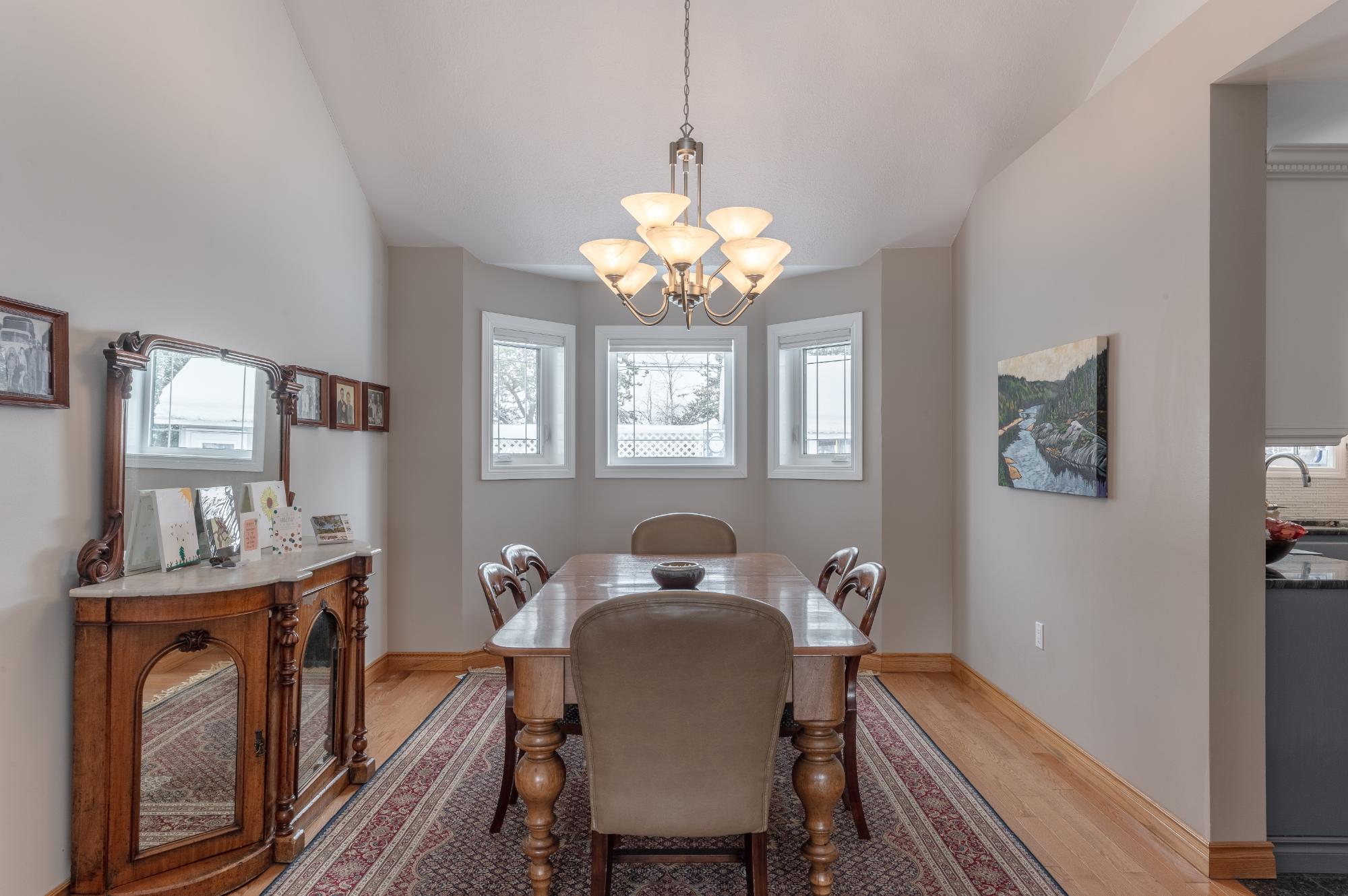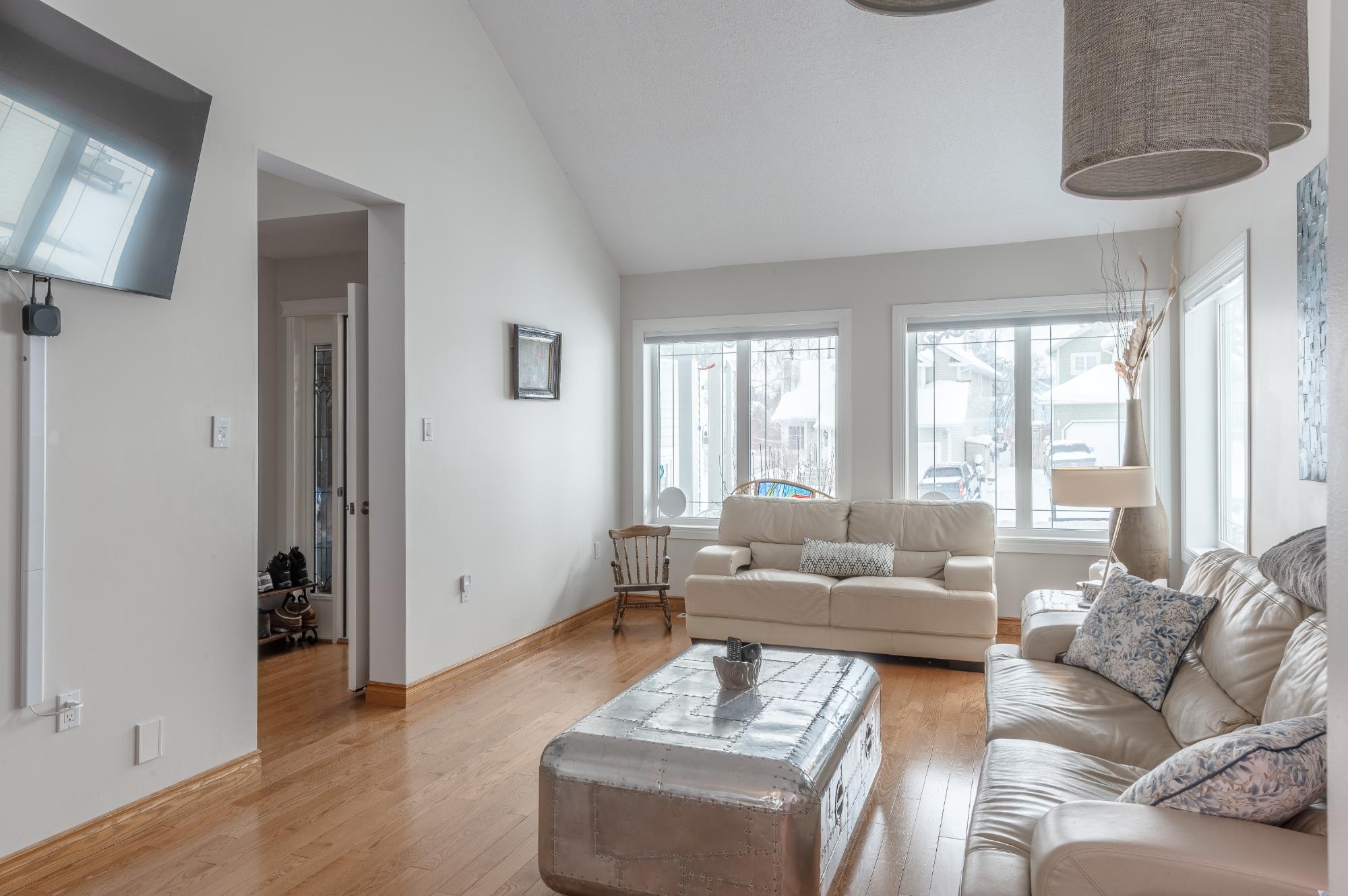 Welcome to this beautiful, well maintained 5 bedroom, 3-bathroom home, perfectly situated on a quiet crescent in a well-established neighborhood. From the moment you arrive, the curb appeal is undeniable—featuring a brick driveway, covered front porch, charming architectural details, planter boxes, and a fragrant lavender bush that warmly welcomes you home. Step inside to a thoughtfully designed closed entryway complete with coat hooks and a built-in storage bench—ideal for keeping everyday life organized. As you move into the main living space, you’re greeted by a grand foyer highlighted by a stunning curved staircase, rich hardwood finishes, and elegant paneled wall. The main living room boasts vaulted ceilings and large updated windows that flood the space with natural light. Notable Updates: roof(2019), triple pane PVC windows(2022), forced air furnace(2021), double wall fibreglass tank(2024), primary ensuite(2025), composite deck, interior doors and trim