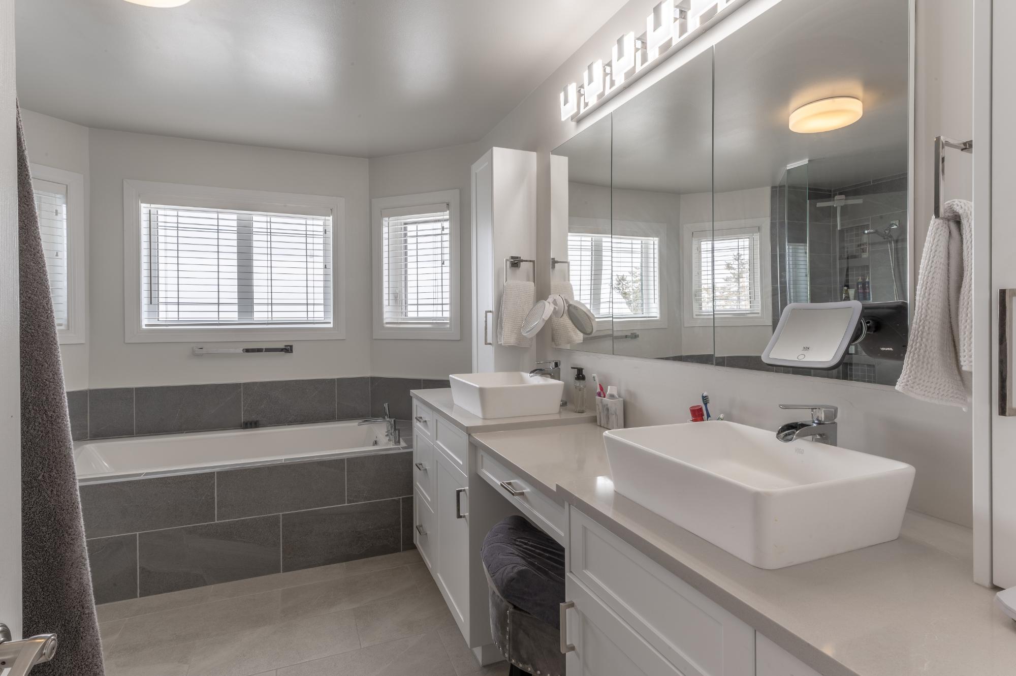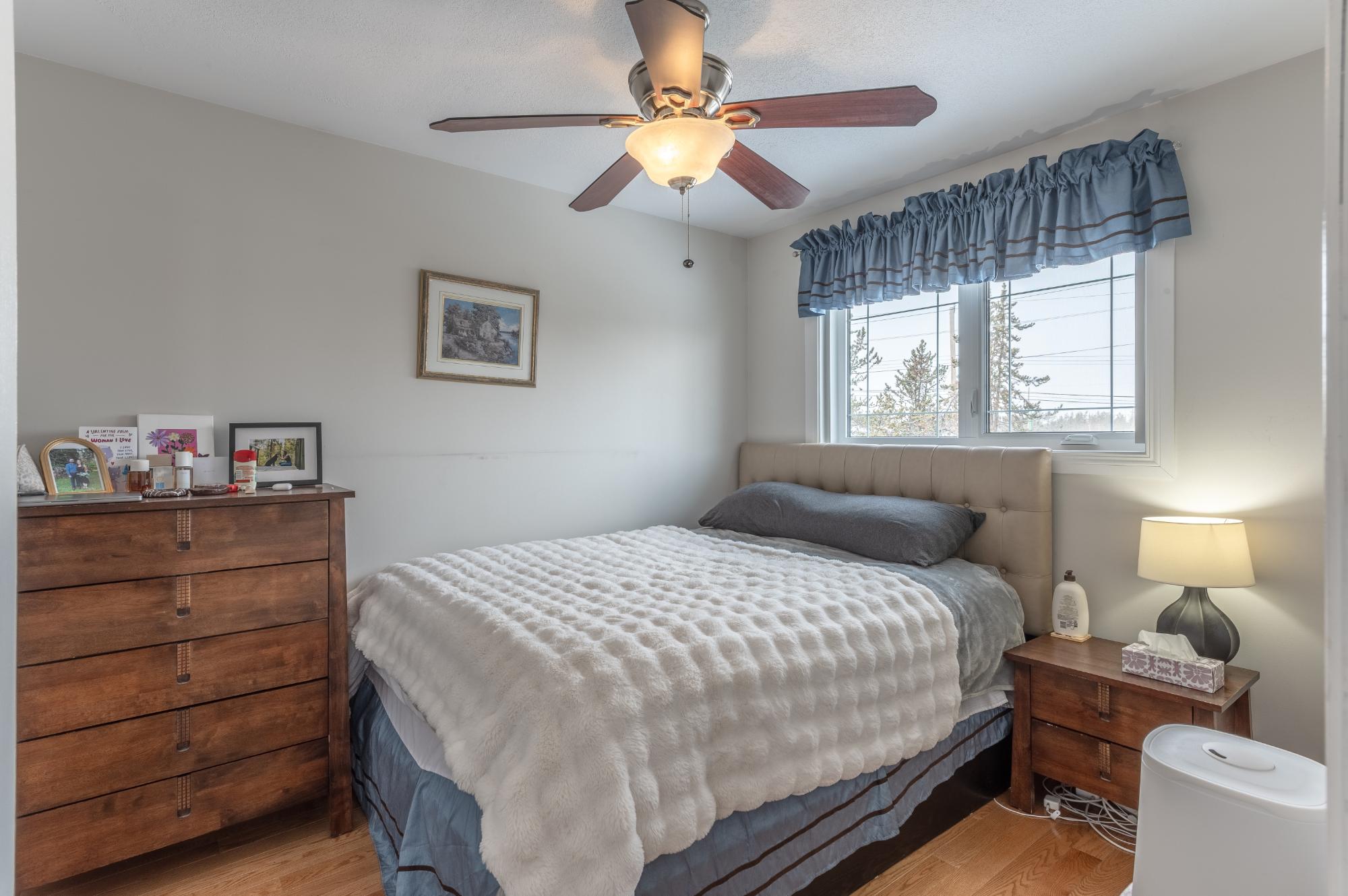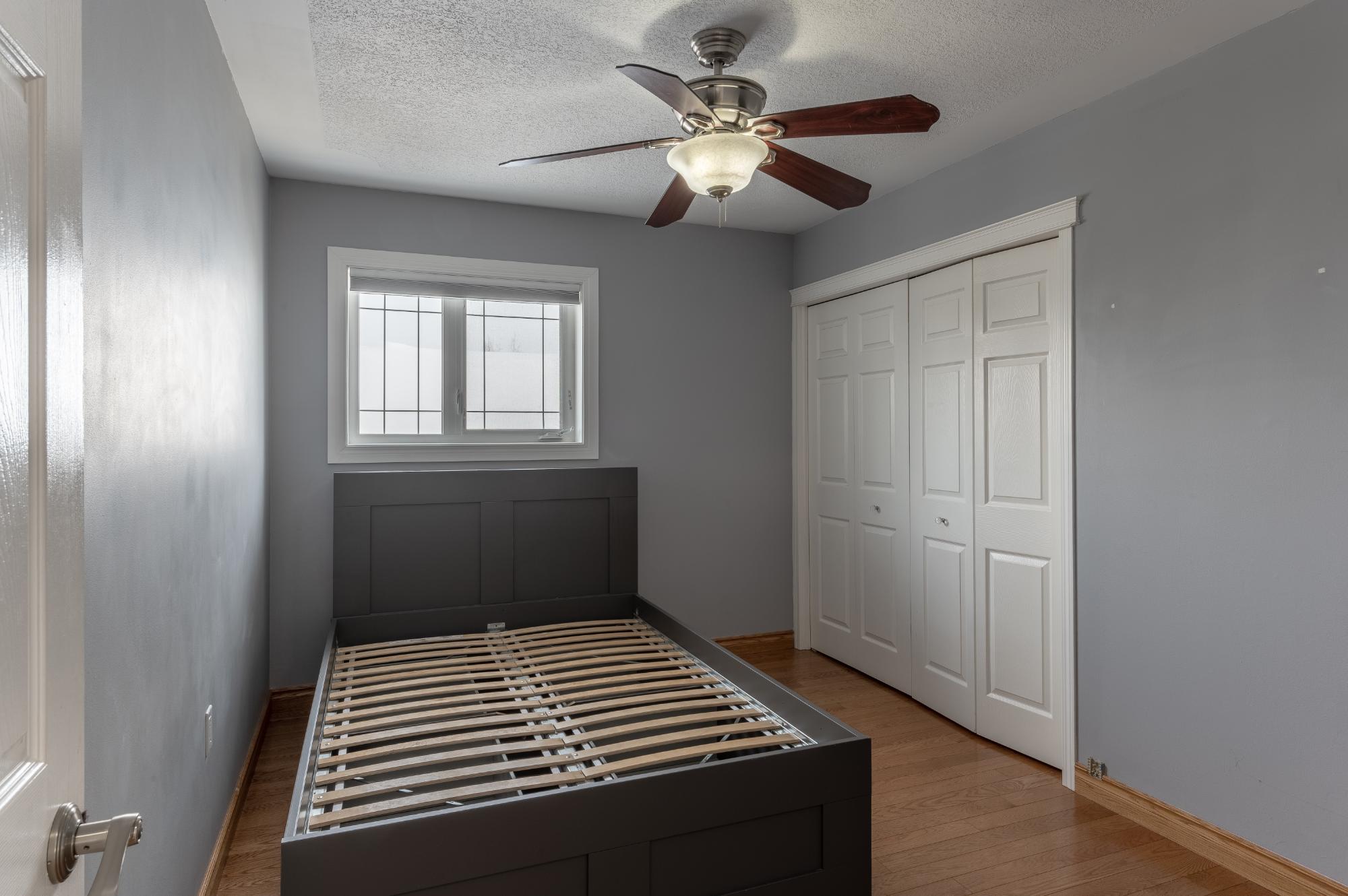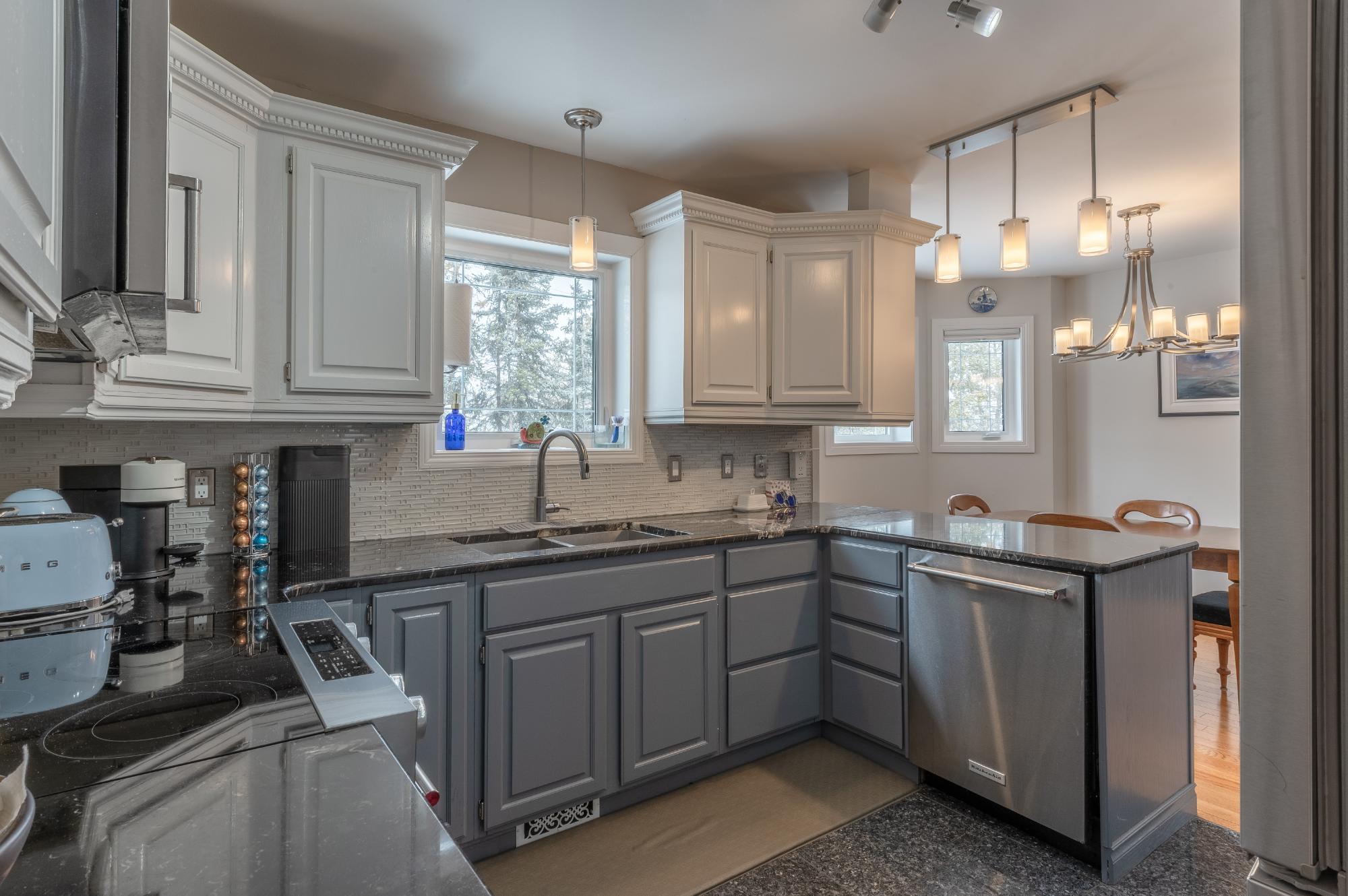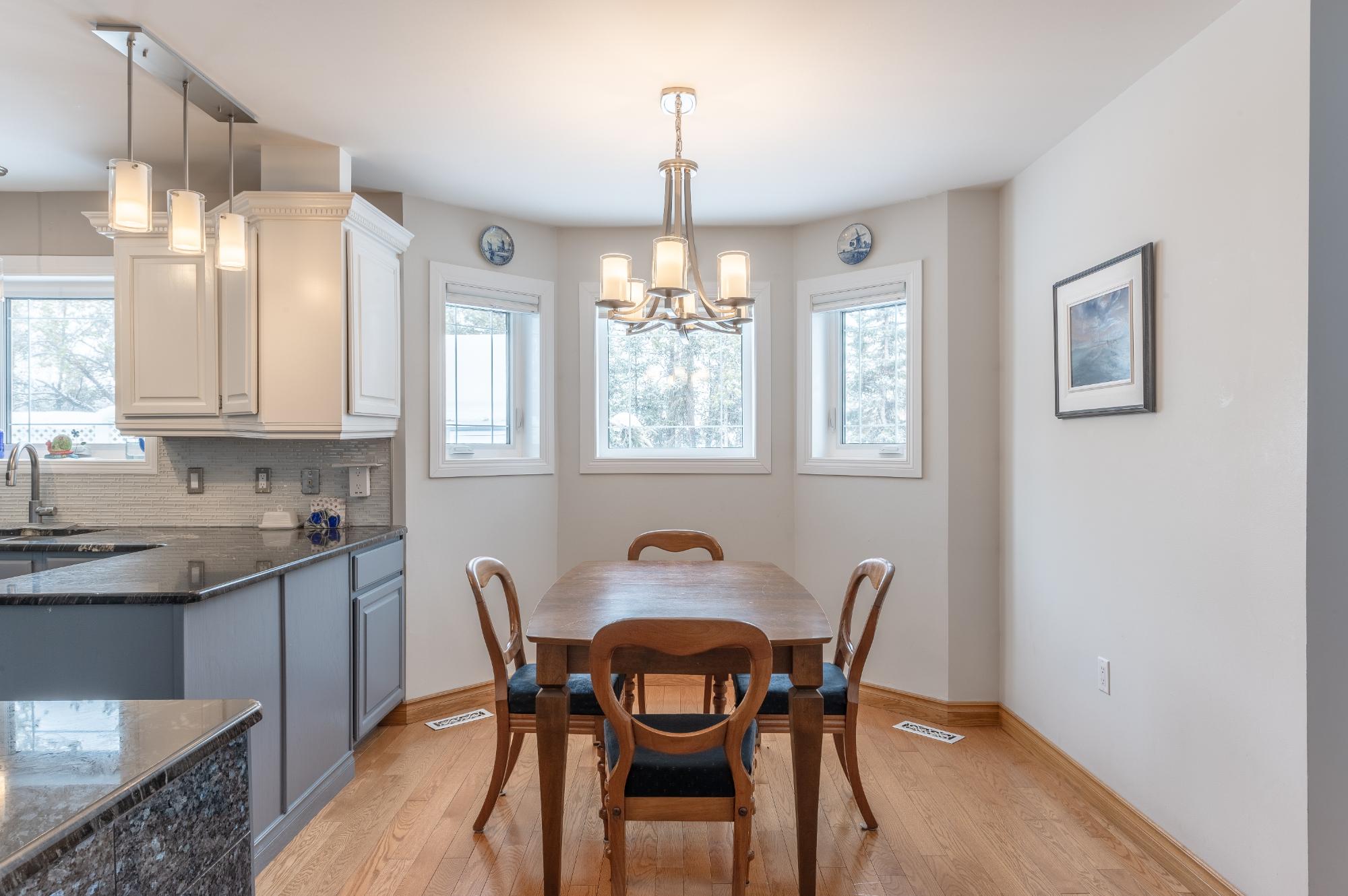 Welcome to this beautiful, well maintained 5 bedroom, 3-bathroom home, perfectly situated on a quiet crescent in a well-established neighborhood. From the moment you arrive, the curb appeal is undeniable—featuring a brick driveway, covered front porch, charming architectural details, planter boxes, and a fragrant lavender bush that warmly welcomes you home. Step inside to a thoughtfully designed closed entryway complete with coat hooks and a built-in storage bench—ideal for keeping everyday life organized. As you move into the main living space, you’re greeted by a grand foyer highlighted by a stunning curved staircase, rich hardwood finishes, and elegant paneled wall. The main living room boasts vaulted ceilings and large updated windows that flood the space with natural light. Notable Updates: roof(2019), triple pane PVC windows(2022), forced air furnace(2021), double wall fibreglass tank(2024), primary ensuite(2025), composite deck, interior doors and trim