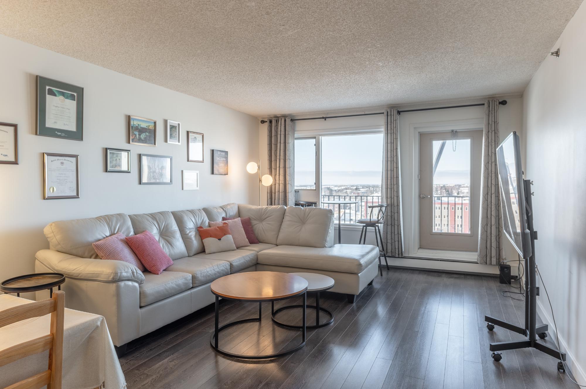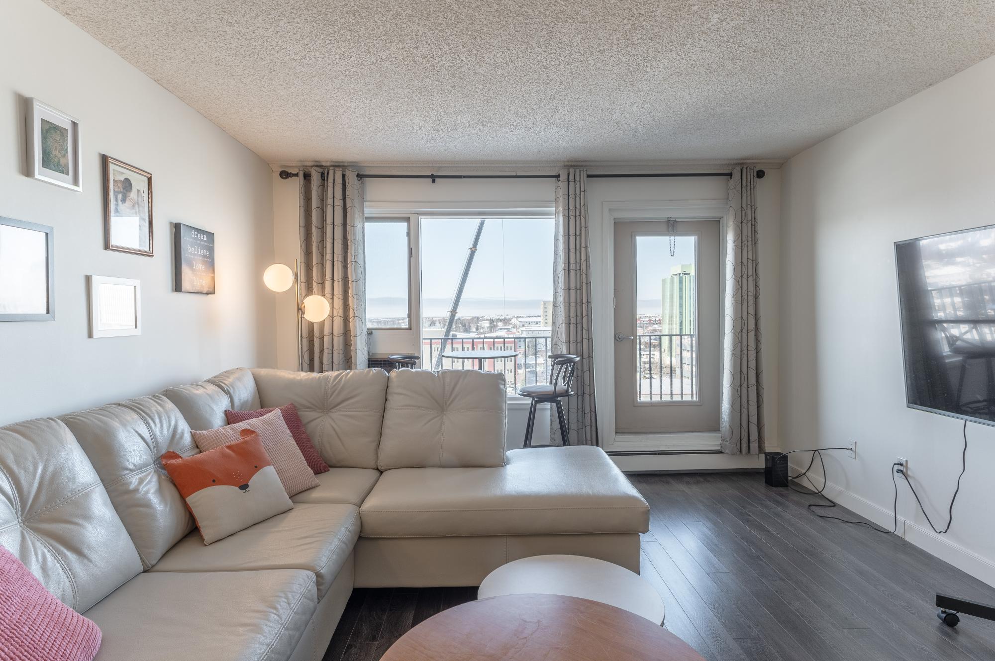 Welcome to 901-5018 49th Street, a beautifully maintained two-bedroom condo in the desirable Northern Heights. Positioned with a southwest exposure, this bright and inviting home is filled with natural light that pours into the main living space, creating a warm and comfortable atmosphere throughout the day. The unit features an upgraded kitchen complete with rich dark cabinetry, stainless steel appliances, and a modern feel that flows seamlessly into the living and dining areas. New flooring throughout adds a fresh, cohesive look, making this home truly move-in ready. Residents of the building enjoy a selection of standout amenities, including a fitness room, a spacious party room for entertaining, and access to a rooftop deck—perfect for hosting larger gatherings or simply relaxing and taking in the summer sunshine.