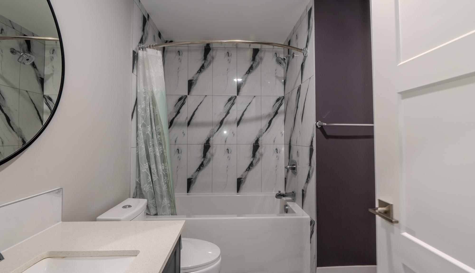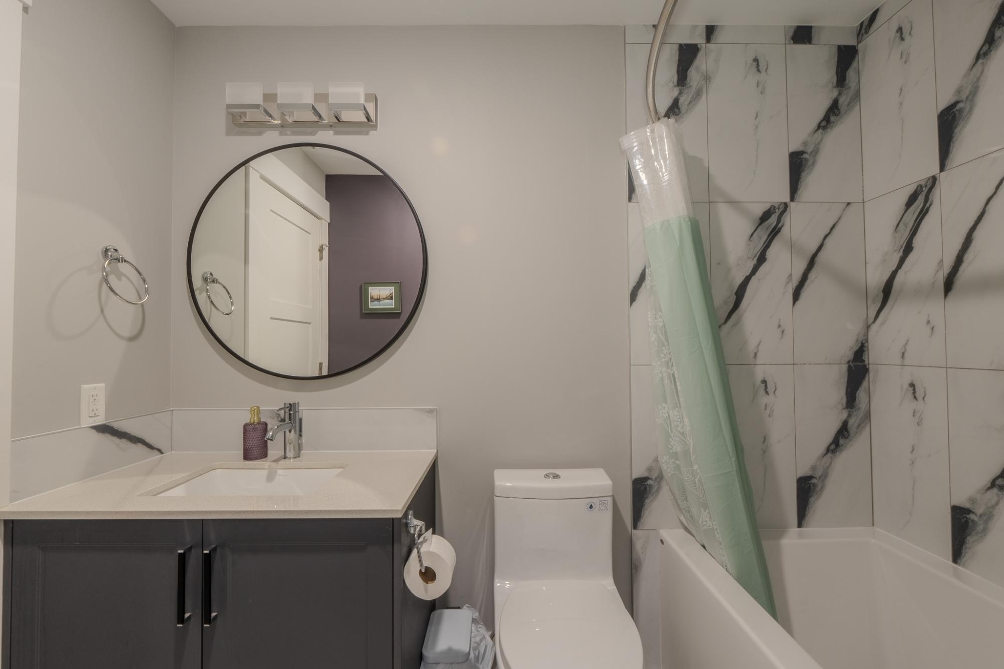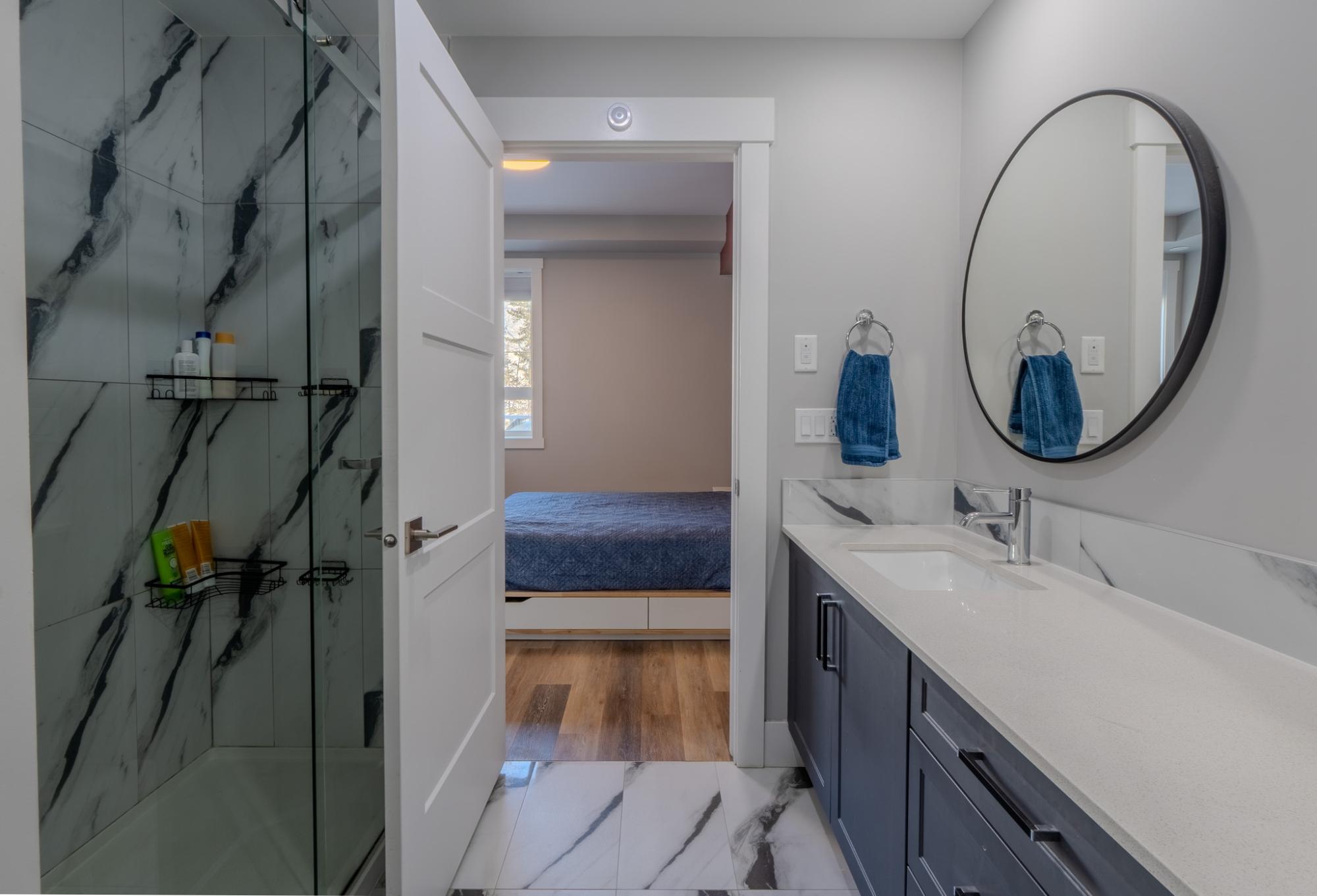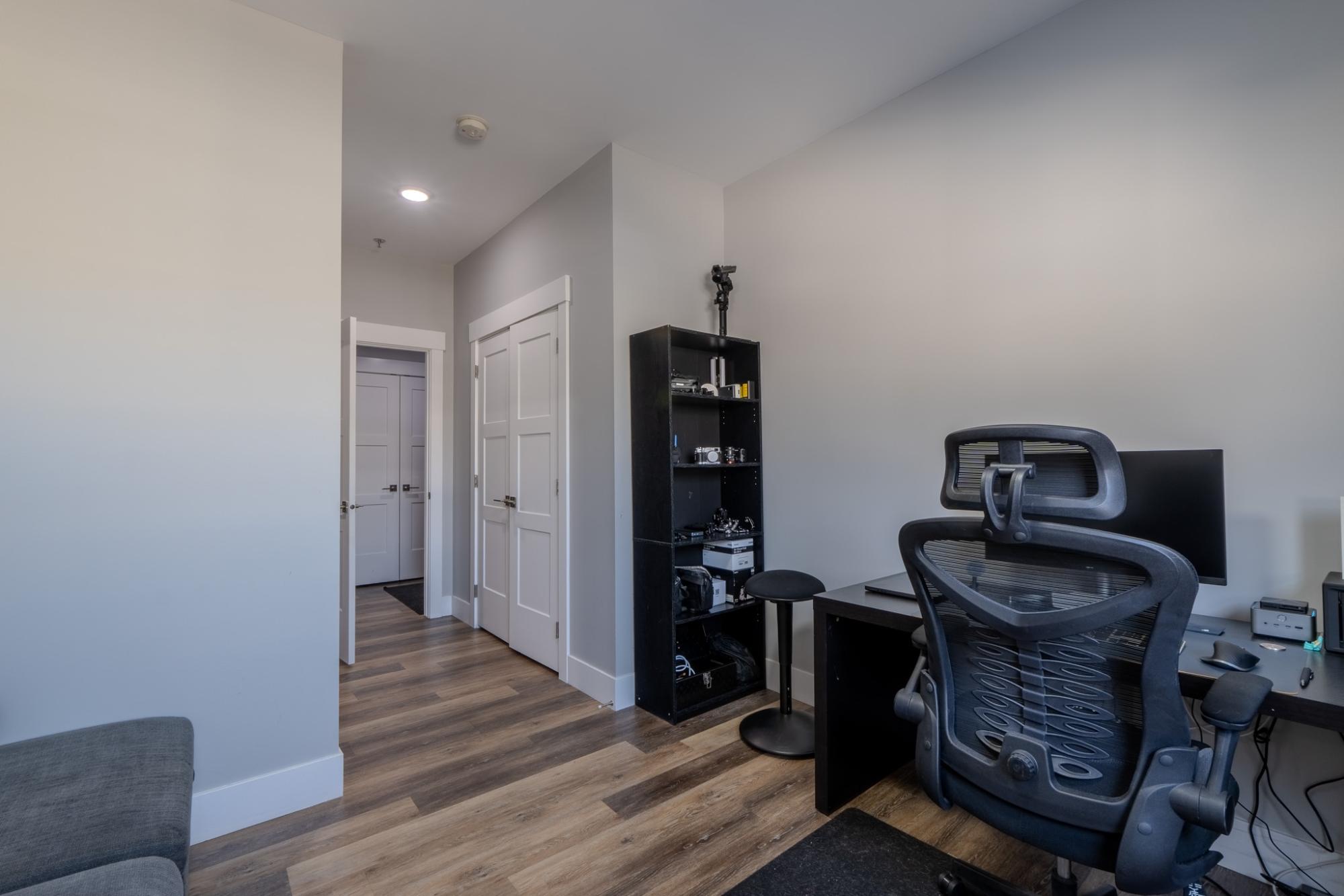Stunning, like-new 2-bedroom, 2-bathroom West Bay condo just a 10-minute walk to the downtown core. Backing onto Tin Can Hill, this pet-friendly building offers direct access to scenic walking trails perfect for you and your dog. Enjoy beautiful nature views through oversized windows, while 16-ft vaulted ceilings in the living room bring in abundant natural light. The open-concept layout is bright and inviting. The sleek kitchen features a large island with seating, quartz countertops, black stainless steel appliances including an induction cooktop, and a subway tile backsplash. The spacious primary offers a luxurious ensuite with double sinks and tiled shower, while the second bedroom has direct access to the main bath. Additional features include luxury vinyl plank flooring, a large laundry room with storage, ample closets, and a separate mechanical room with NTI propane boiler and on-demand hot water.