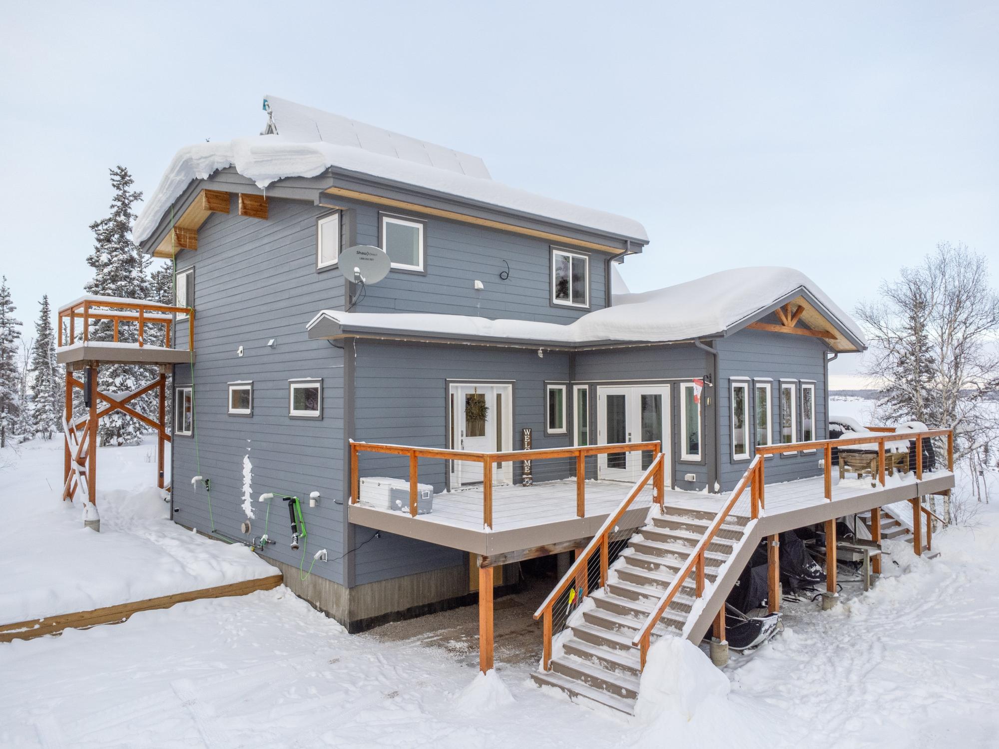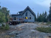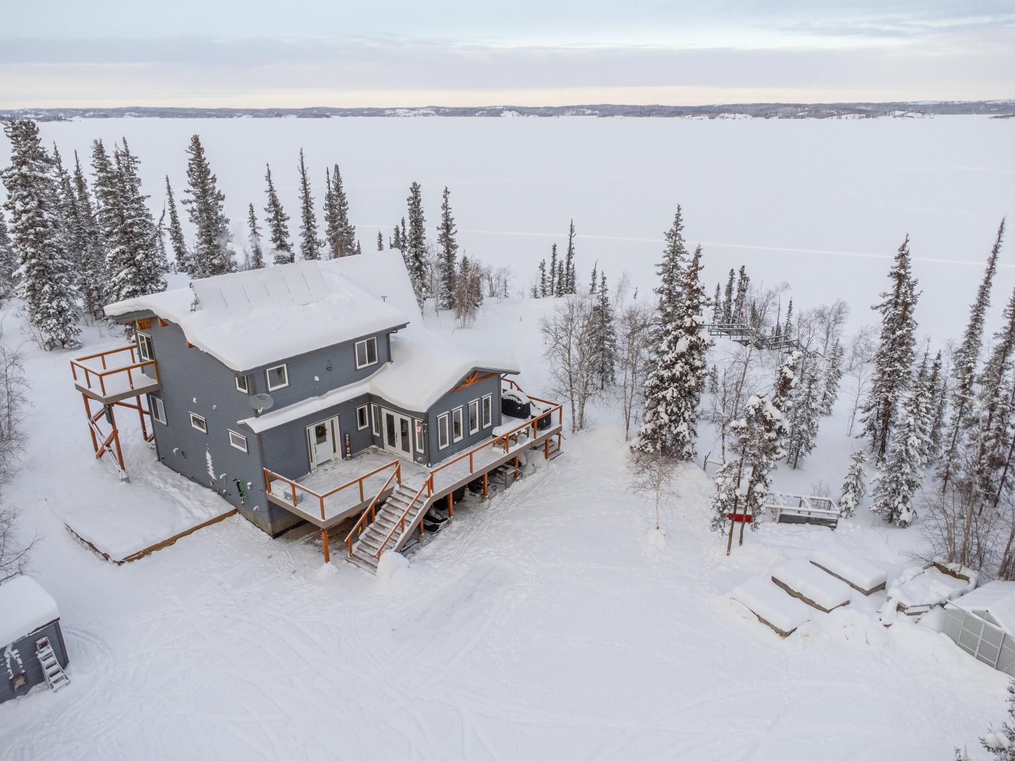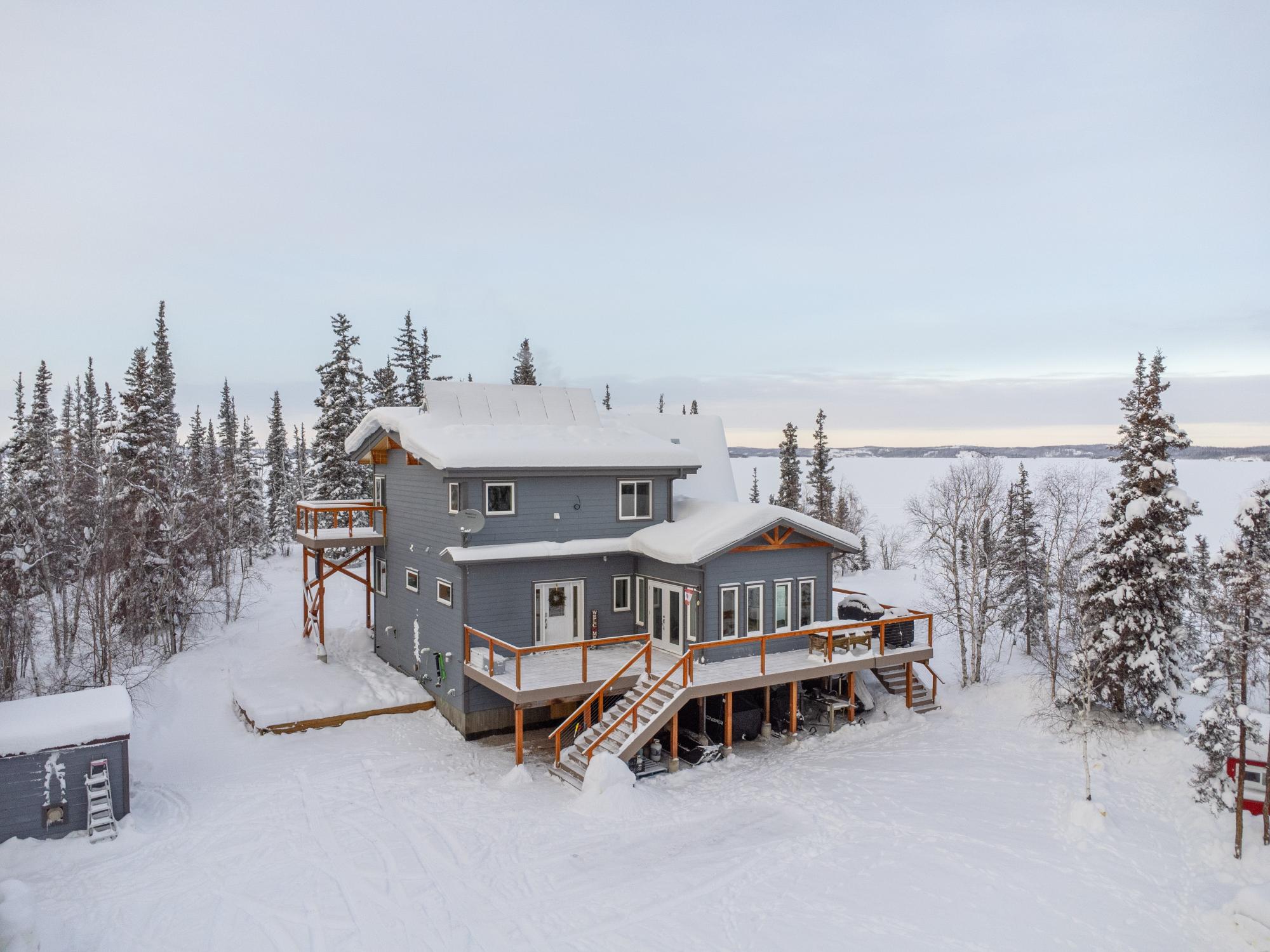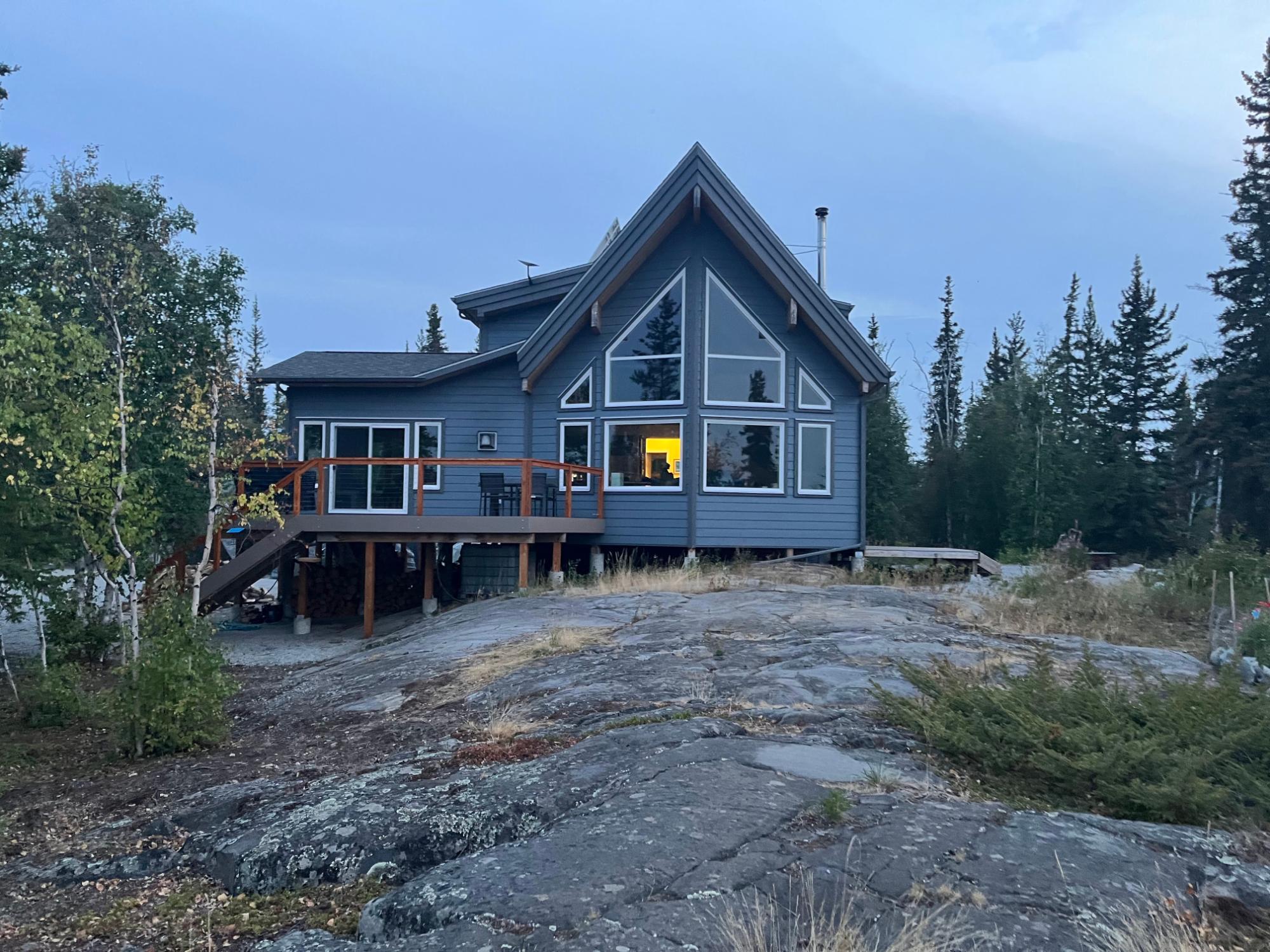 Located on Prelude Lake East, this 160 x 200 ft peninsula property is privately tucked at the end of the road and surrounded by water on three sides with stairs leading to a private dock and boatshed with exceptional lake access and views. Built in 2018, this 2000 sqft custom home showcases post-and-beam construction, vaulted ceilings, and expansive lake-facing windows. Offering 2 bedrooms and 2 bathrooms, a chef’s kitchen with oversized island and propane range, stainless appliances, and a bright 3-season sunroom and 900 sqft deck. This developed lot offers 32,000 sqft with crushed gravel, gardens, 3 raised beds, 2 greenhouses, and irrigation throughout. Solar with propane backup.