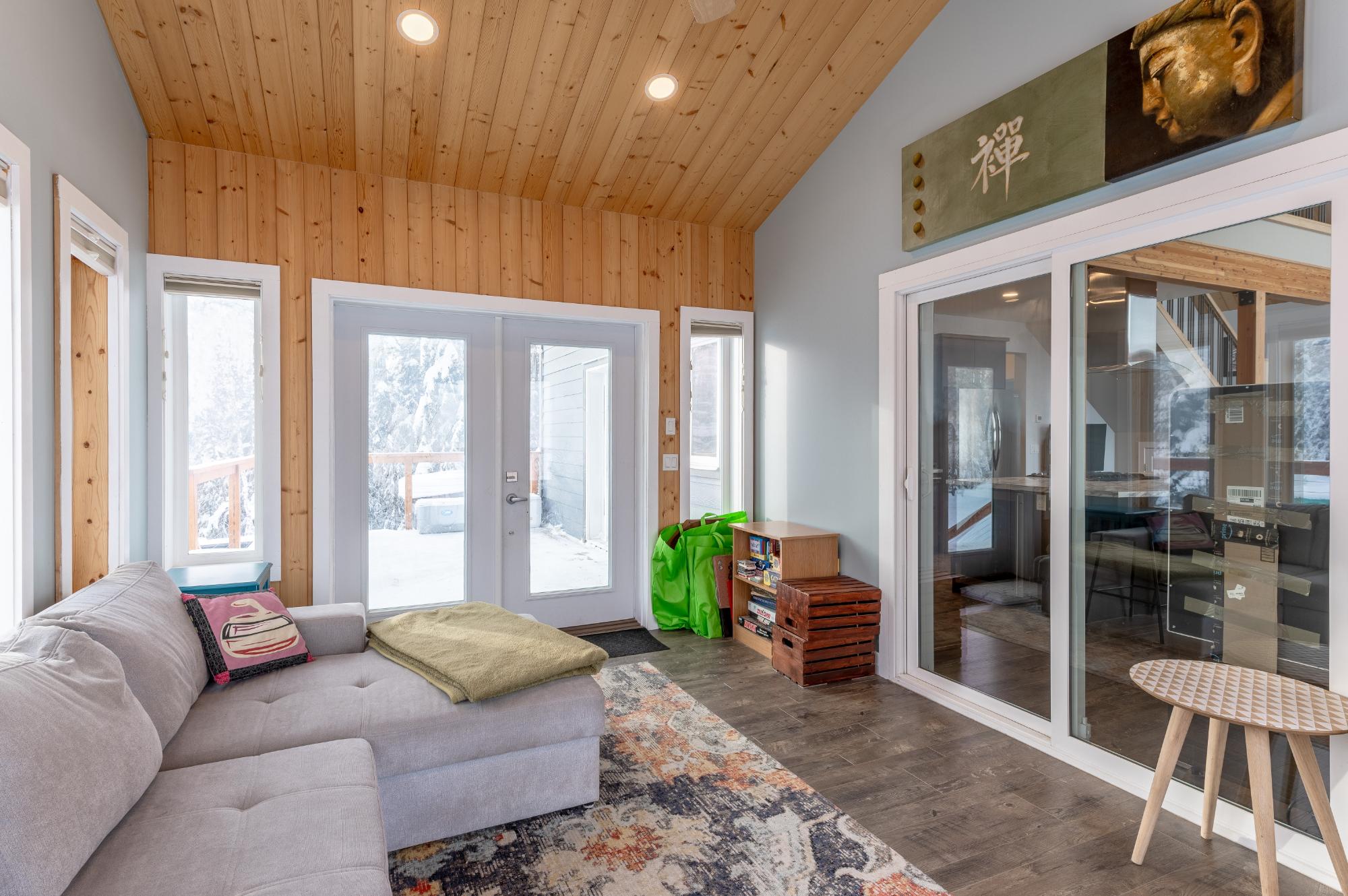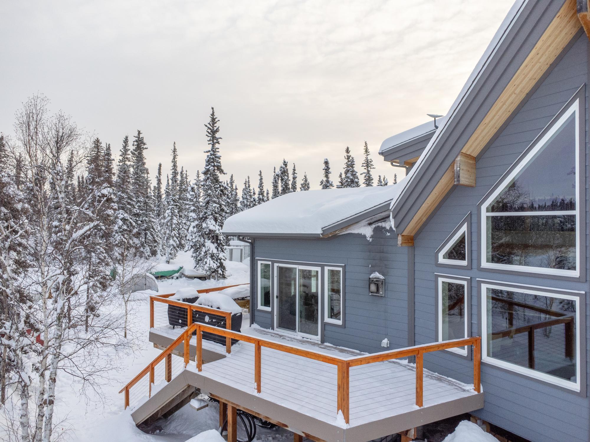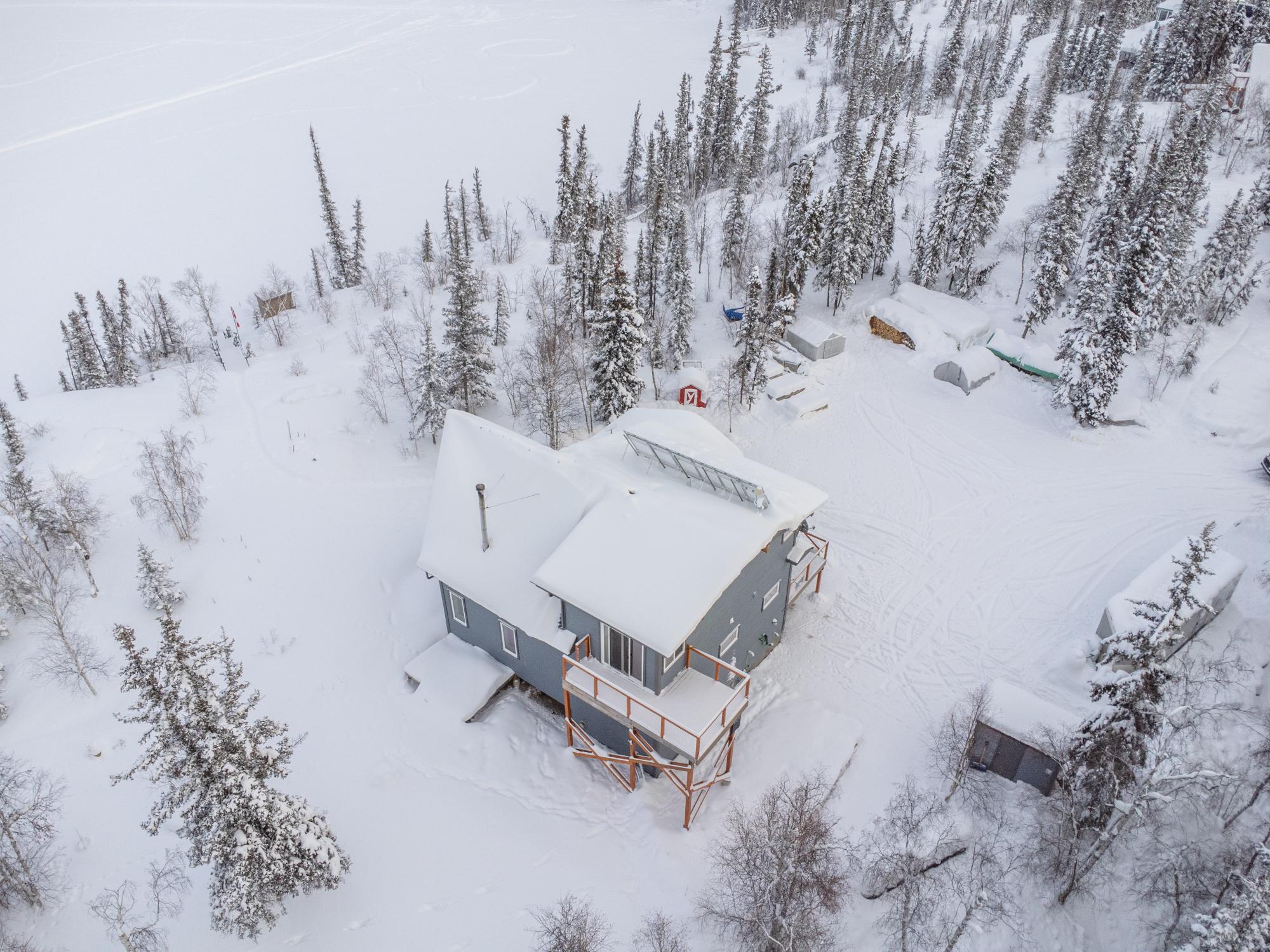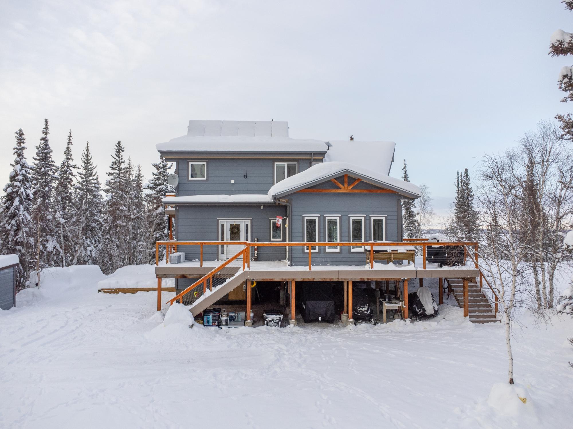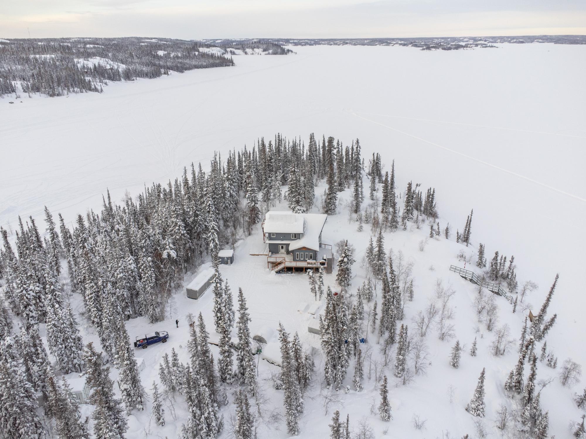 Located on Prelude Lake East, this 160 x 200 ft peninsula property is privately tucked at the end of the road and surrounded by water on three sides with stairs leading to a private dock and boatshed with exceptional lake access and views. Built in 2018, this 2000 sqft custom home showcases post-and-beam construction, vaulted ceilings, and expansive lake-facing windows. Offering 2 bedrooms and 2 bathrooms, a chef’s kitchen with oversized island and propane range, stainless appliances, and a bright 3-season sunroom and 900 sqft deck. This developed lot offers 32,000 sqft with crushed gravel, gardens, 3 raised beds, 2 greenhouses, and irrigation throughout. Solar with propane backup.