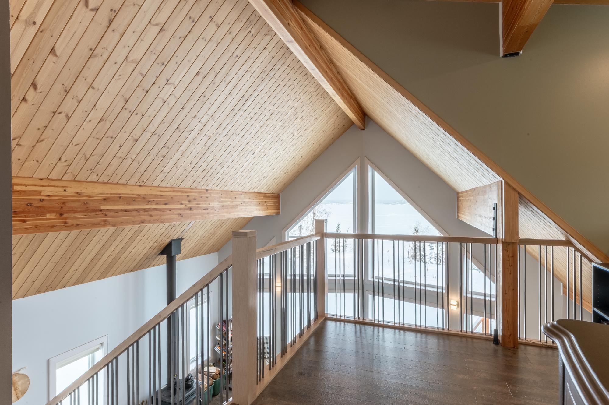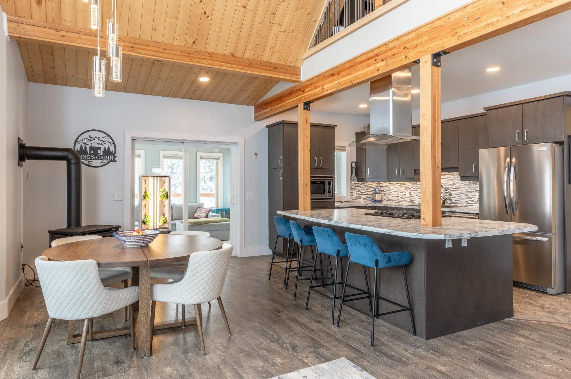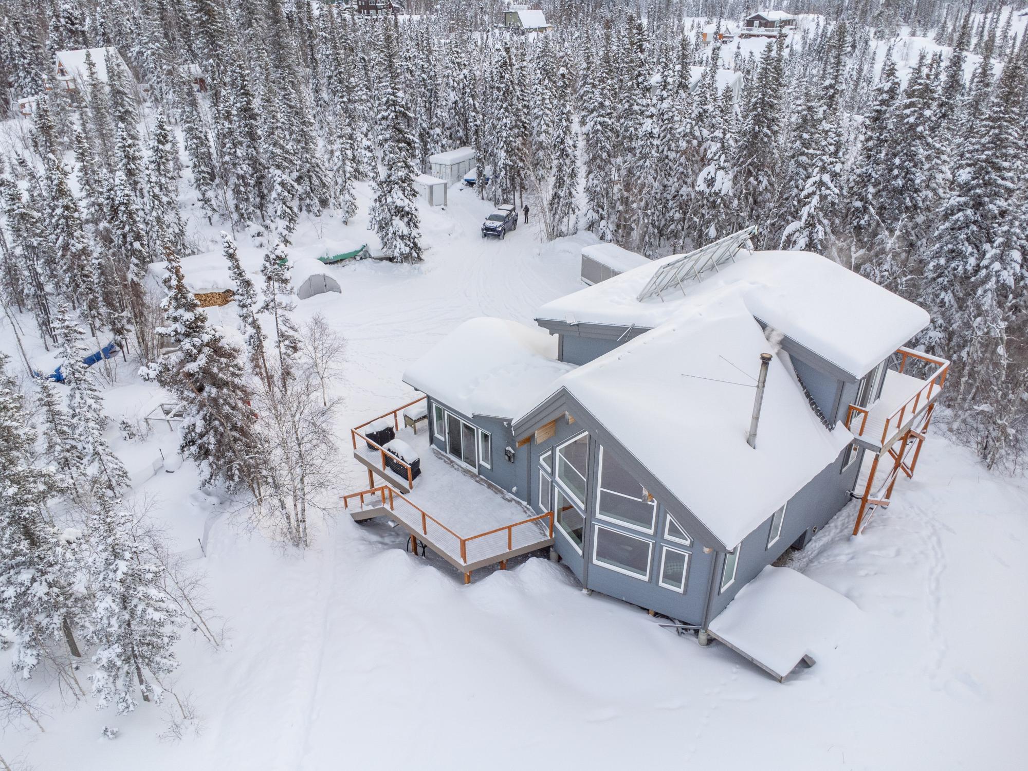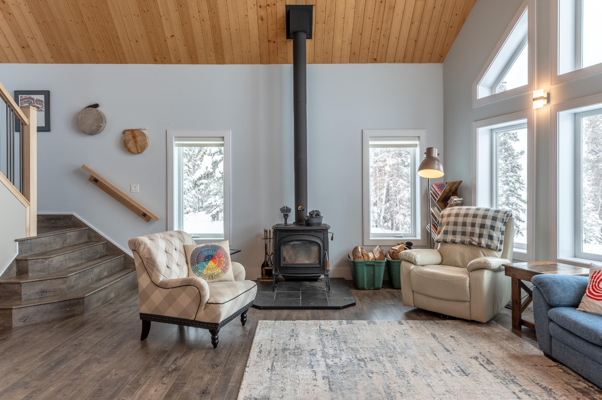 Located on Prelude Lake East, this 160 x 200 ft peninsula property is privately tucked at the end of the road and surrounded by water on three sides with stairs leading to a private dock and boatshed with exceptional lake access and views. Built in 2018, this 2000 sqft custom home showcases post-and-beam construction, vaulted ceilings, and expansive lake-facing windows. Offering 2 bedrooms and 2 bathrooms, a chef’s kitchen with oversized island and propane range, stainless appliances, and a bright 3-season sunroom and 900 sqft deck. This developed lot offers 32,000 sqft with crushed gravel, gardens, 3 raised beds, 2 greenhouses, and irrigation throughout. Solar with propane backup.