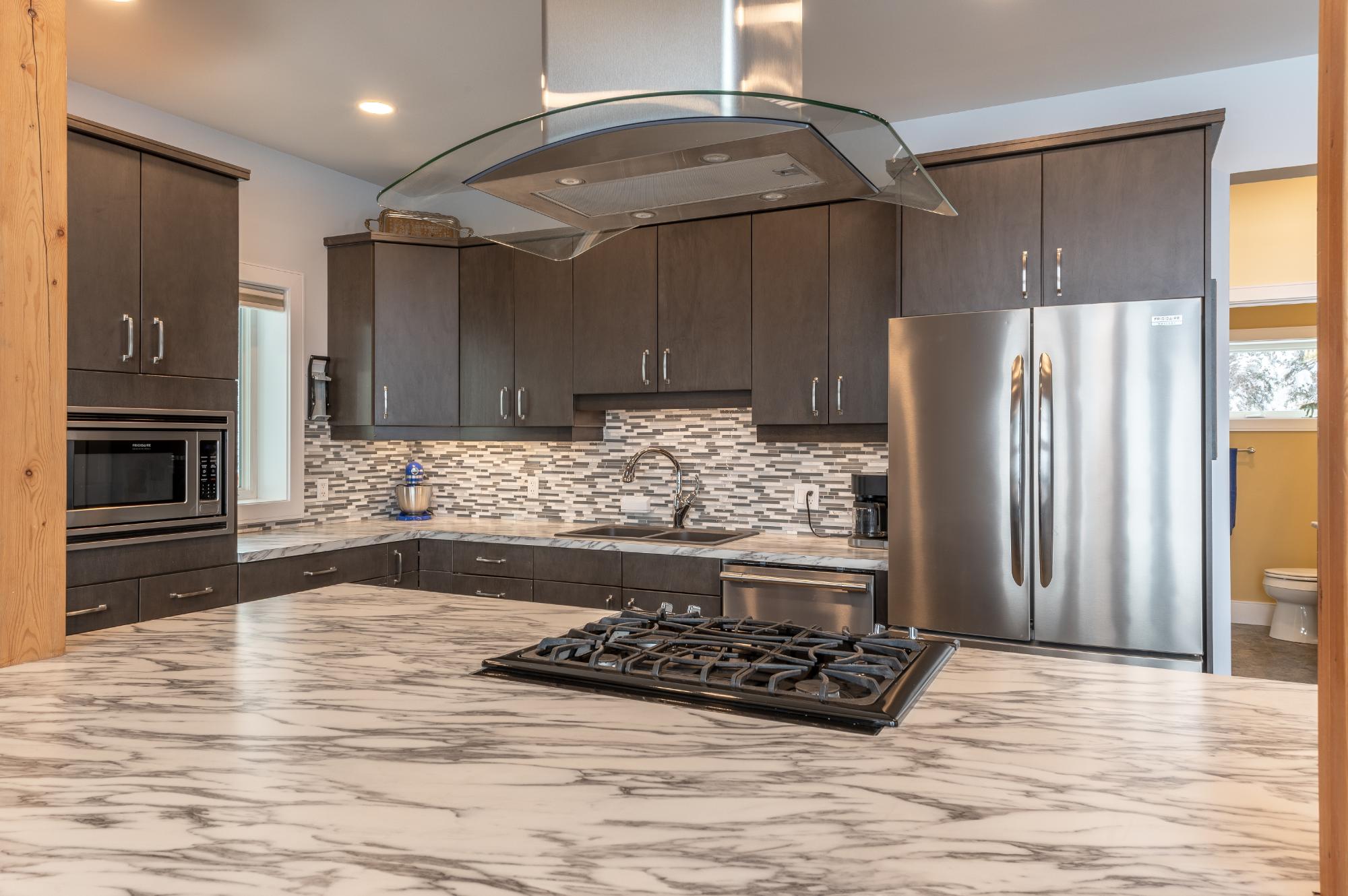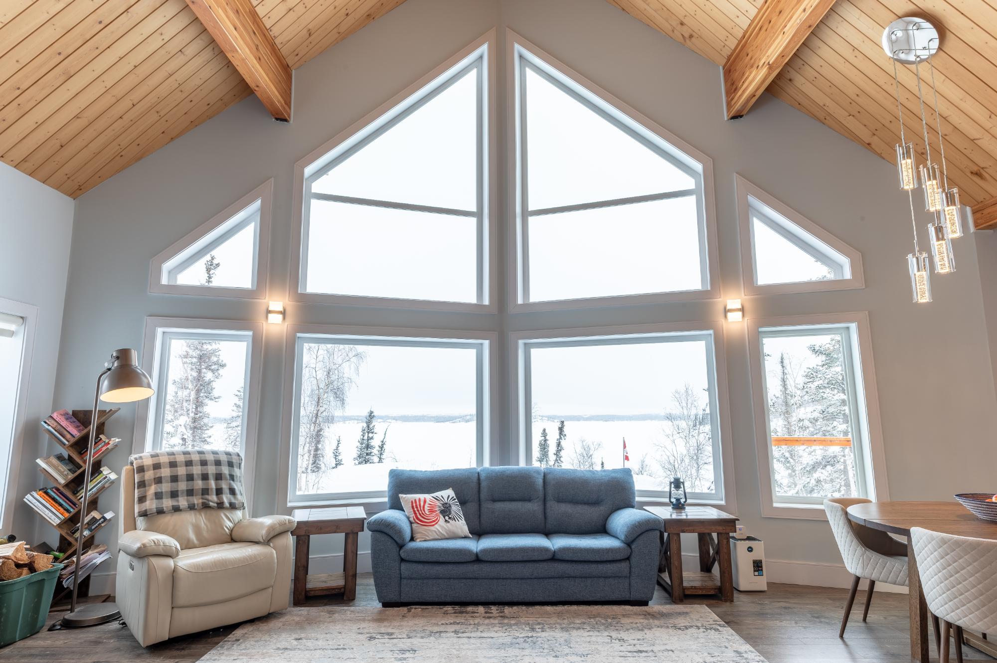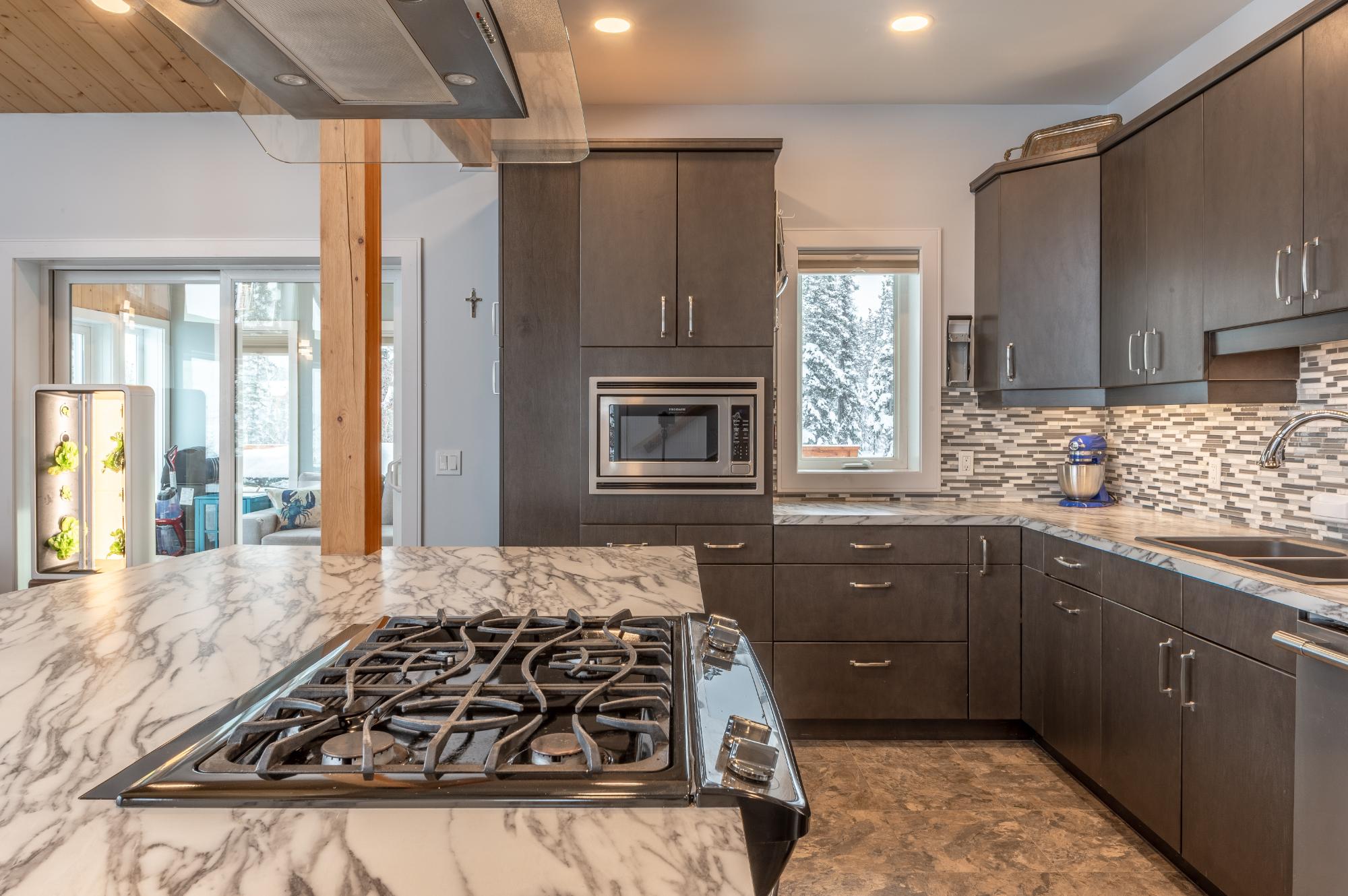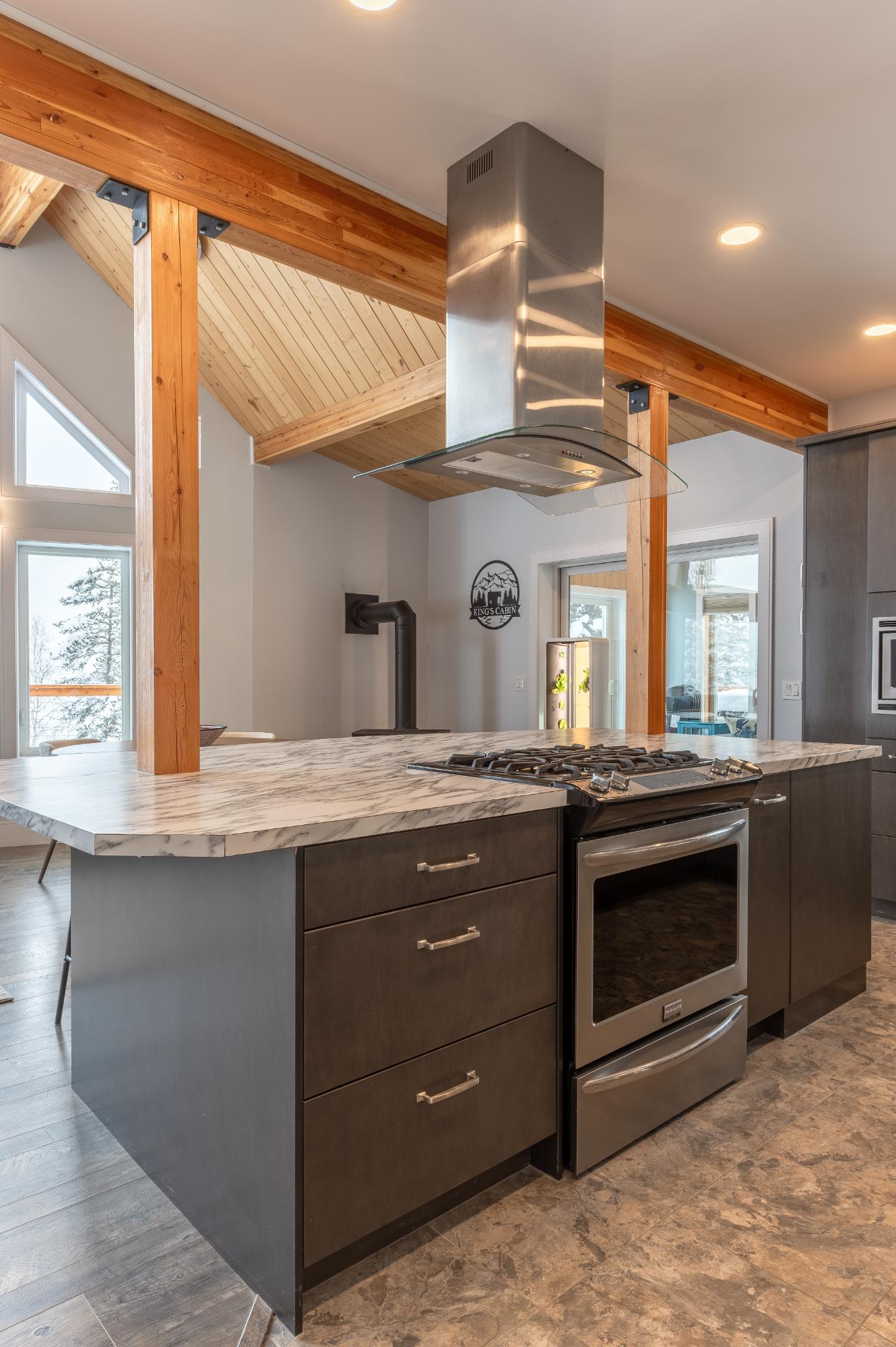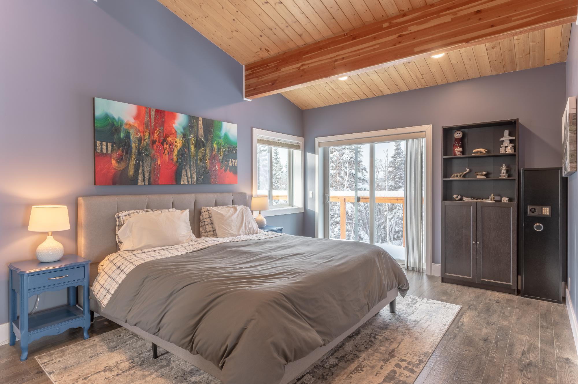 Located on Prelude Lake East, this 160 x 200 ft peninsula property is privately tucked at the end of the road and surrounded by water on three sides with stairs leading to a private dock and boatshed with exceptional lake access and views. Built in 2018, this 2000 sqft custom home showcases post-and-beam construction, vaulted ceilings, and expansive lake-facing windows. Offering 2 bedrooms and 2 bathrooms, a chef’s kitchen with oversized island and propane range, stainless appliances, and a bright 3-season sunroom and 900 sqft deck. This developed lot offers 32,000 sqft with crushed gravel, gardens, 3 raised beds, 2 greenhouses, and irrigation throughout. Solar with propane backup.