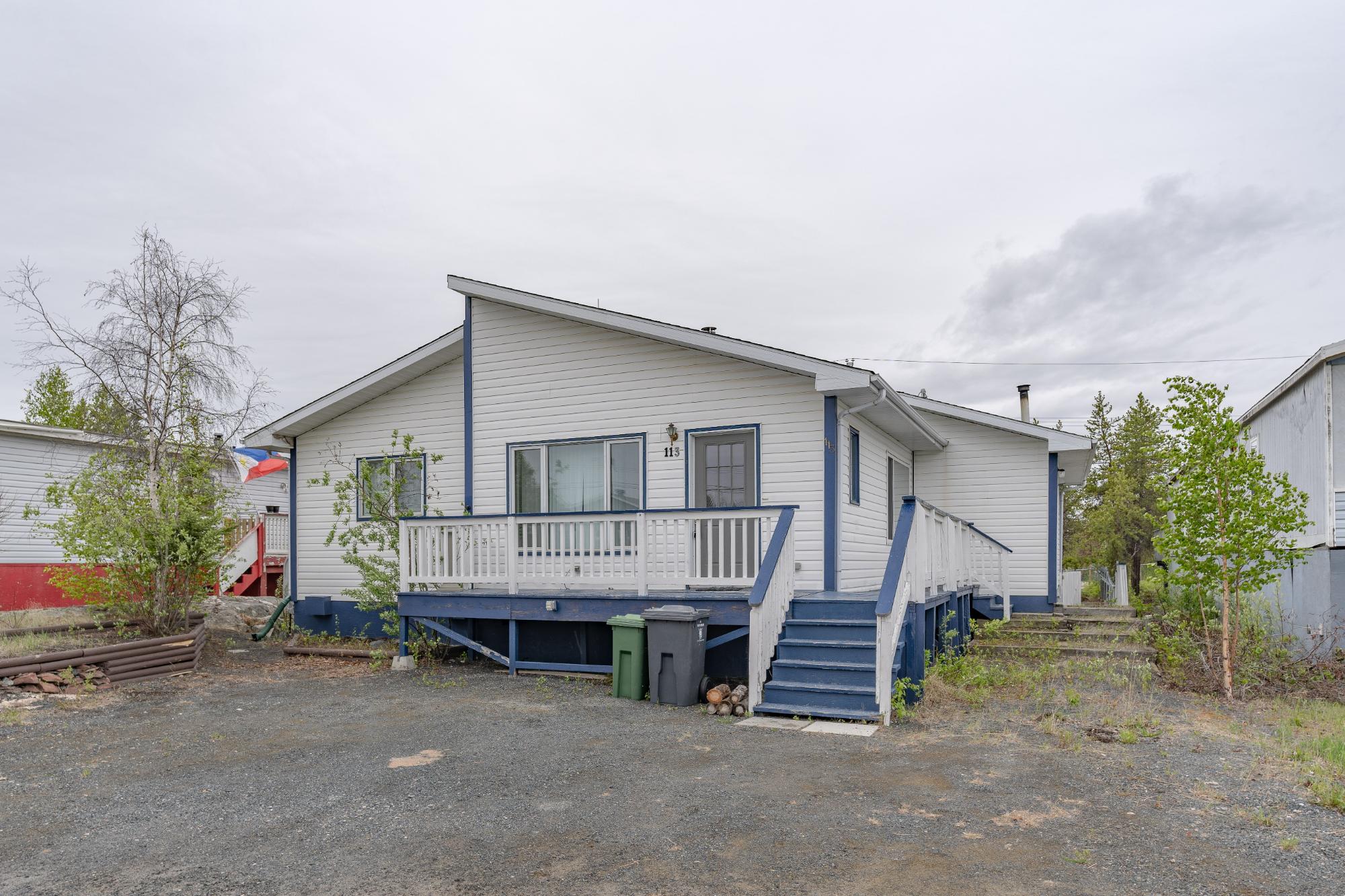113 Herriman is a stick-built duplex with 2 - 1 bedroom 1 bathroom suites. Both suites include secure entry, self isolated with kitchens, bathroom, laundry and storage. Apartment 1 features 1 large bedroom with full ensuite, wood fireplace, laundry/storage room, with the kitchen and dining leading out onto the massive back deck and backyard which backs onto Range Lake North School. In the back yard are 2 well sized storage sheds. Apartment 2 features 1 bed and 1 large bathroom with a soaker jetted tub, stacked washer dryer, large storage closet and fully equipped kitchen. This property would be well suited to a buyer seeking rental income or an Investor/AIRBNB operator. Close to hospital, the new LARGA building site and shopping. New oil tank installed 2024. Photos are from 2024.